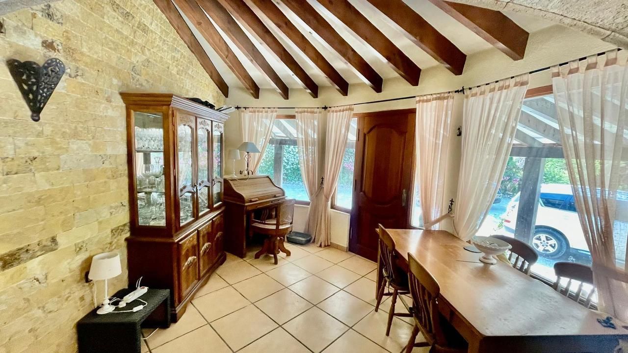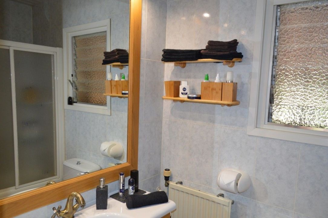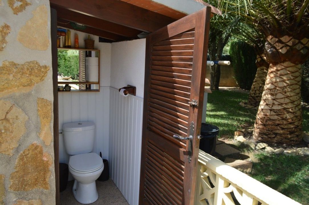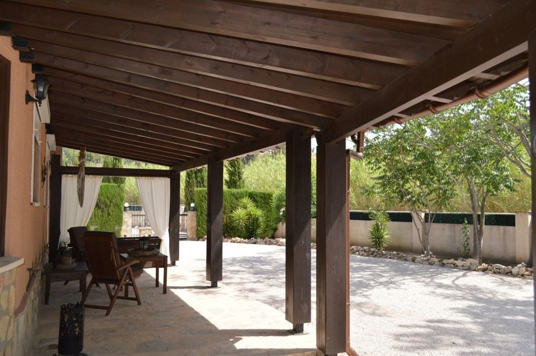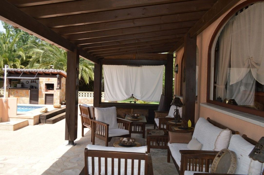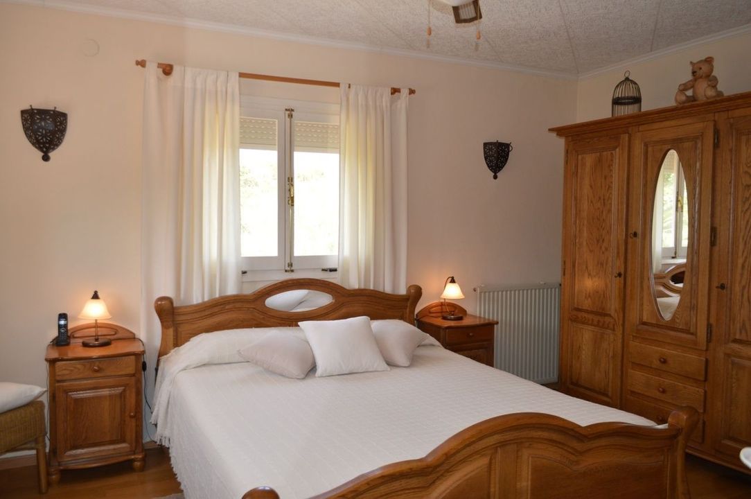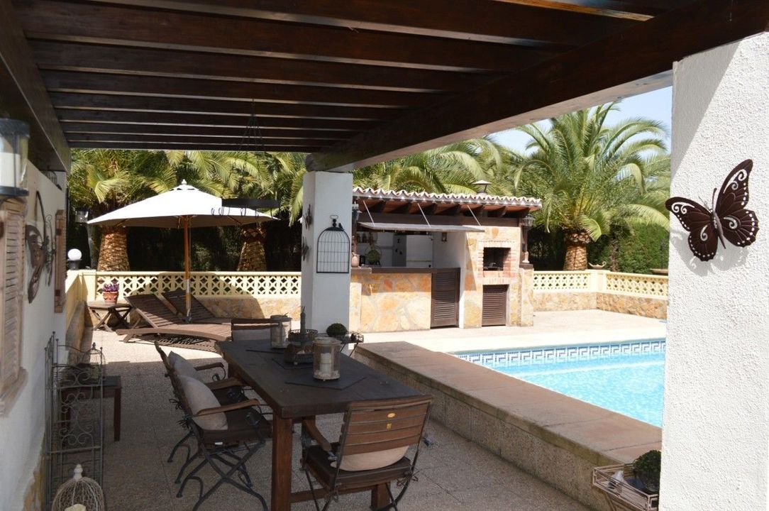 Landhuis in rustieke stijl, gelegen op een volledig privé, op het zuiden gelegen vlak perceel van 2.397 m², op slechts een korte wandeling van het charmante dorpje Alcalalí. Het hoofdgebouw beschikt over een ruime halfronde overdekte naya van 70 m², die uitkomt in een gezellige woonkamer met hoge houten balkenplafonds, karakteristieke ramen, een Tosca-stenen boog, een stenen muur, een open haard met pelletkachel en airconditioning met warmte- en koudefunctie. De volledig ingerichte keuken heeft een eethoek en komt uit op een tuin die ideaal is om buiten te eten. Op de begane grond is er een slaapkamer met twee eenpersoonsbedden en een eigen doucheruimte, een extra kamer die momenteel als slaapkamer wordt gebruikt met toegang tot de tuin, en een familiebadkamer. Boven is er een grote master suite met airconditioning en een open hoekdouche. Een apart gastenverblijf biedt een slaapkamer met twee eenpersoonsbedden en een chill-out lounge. De volgroeide mediterrane tuinen zijn uitzonderlijk privé en omvatten een zwembad van 8x4m, een zonneterras, een buitendouche, een houten pergola, een zomerkeuken met ingebouwde barbecue en een apart toilet. Extra voorzieningen zijn onder meer centrale verwarming op gas, een dubbele garage met opslagruimte, een buitenruimte voor huishoudelijke taken, een automatische poort met carport, voldoende parkeergelegenheid op eigen terrein, palmbomen en fruitbomen, en een extra omheind stuk grond. Een unieke en charmante woning in een rustige omgeving – een vroege bezichtiging wordt ten zeerste aanbevolen.