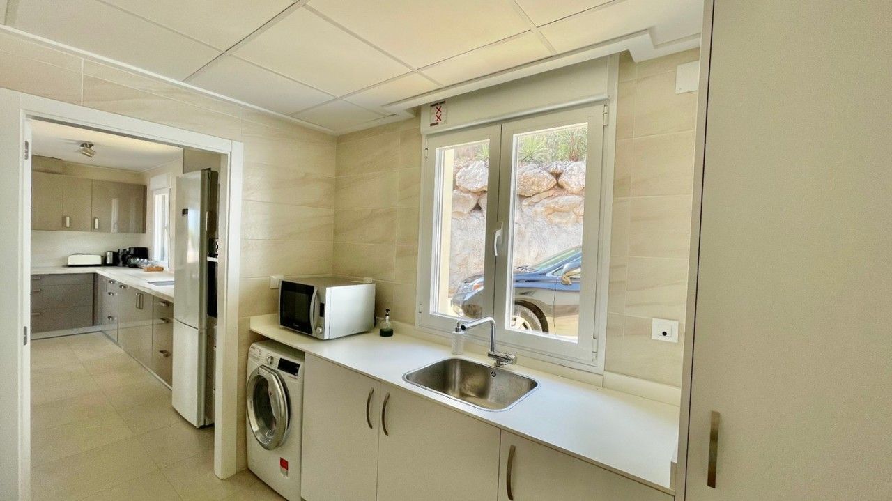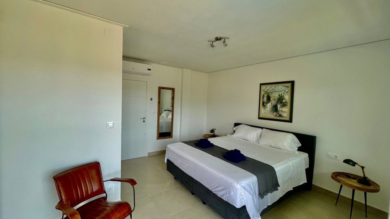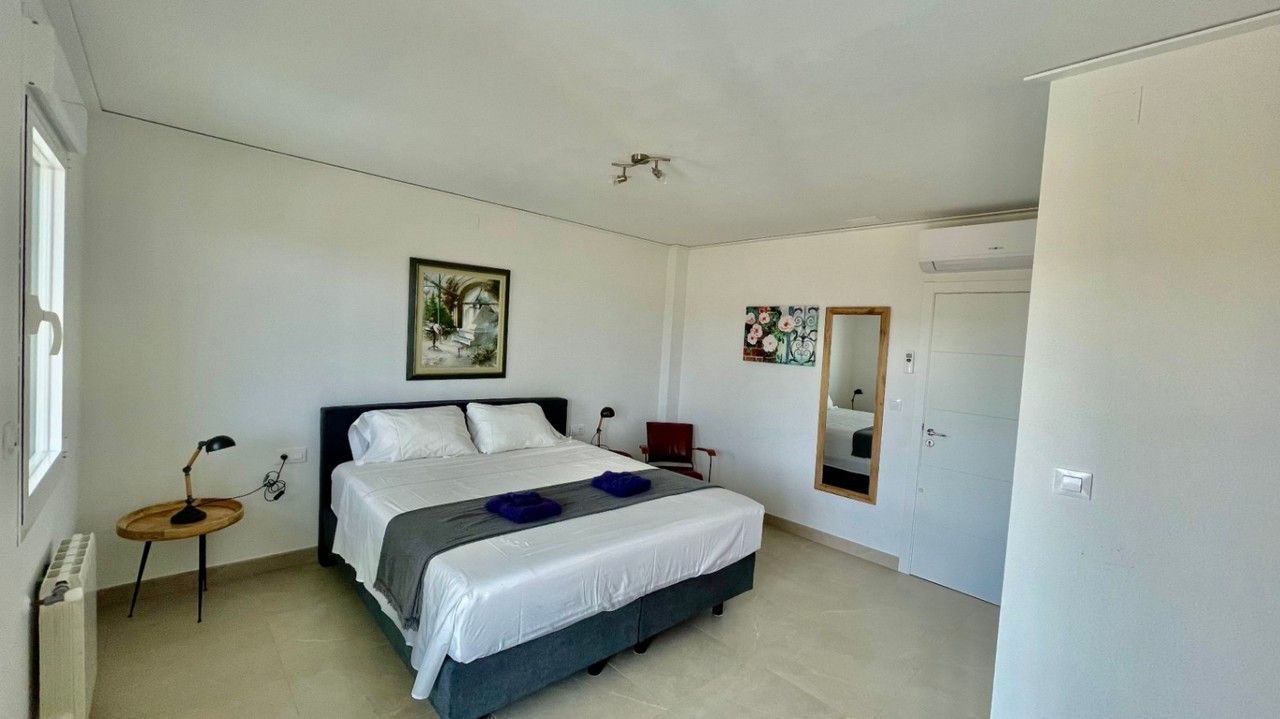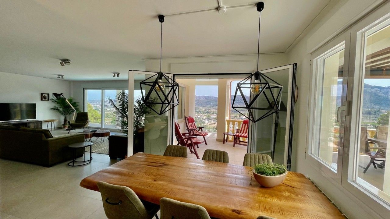 Prachtig, modern en elegant verblijf op een heuvel op het zuiden met spectaculair panoramisch uitzicht, gelegen in het dorp Alcalali met een scala aan voorzieningen. Deze lichte en luchtige, zeer ruime woning heeft een kenmerkende elegantie en tijdloos luxe design. De accommodatie is toegankelijk via een elektrische poort met ruime parkeergelegenheid en bestaat uit een grote ontvangsthal die leidt naar een 80m2 open lounge-eetkamer met openslaande deuren naar een zonneterras, een luxe volledig ingerichte keuken met openslaande deuren die leiden naar een al fresco chill out overdekte naya zonneterras binnenplaats, en een aparte bijkeuken. Een hal leidt naar een grote slaapkamer met inbouwkasten, warme en koude airconditioning, openslaande deuren naar een eigen balkon zonneterras, en een grote ensuite badkamer met een aparte inloopdouche. Nog twee grote slaapkamersuites met inbouwkasten, warme en koude airconditioning, openslaande deuren naar een zonneterras en een familiedoucheruimte. Er is ook een apart gastentoilet. Een interne lift of trap naar beneden leidt naar een apart op zichzelf staand appartement met vier slaapkamers op zwembadniveau met een 50 m2 grote open woon-/eetkeuken met drie dubbele openslaande deuren naar een zonneterras aan het zwembad. Een hal leidt naar een grote slaapkamersuite met een ensuite doucheruimte, inbouwkasten, warme en koude airconditioning en openslaande deuren naar het zonneterras bij het zwembad. Er zijn nog drie tweepersoonsslaapkamers met inbouwkasten, warme en koude airconditioning en openslaande deuren naar het zonneterras bij het zwembad. Op dit niveau is er een grote familiebadkamer met een inloopdouche, een gastentoilet, een bijkeuken en een grote berging. Buiten vind je een prachtig zwembad van 18 m x 6,5 m met 200 zonneterrassen en een buitendouche. Deze hoogwaardige woning biedt elektrische vloerverwarming met luchtpomp, volledig warme en koude airconditioning in alle kamers, elektrisch bediende rolluiken, ruime beveiligde parkeergelegenheid en mediterrane tuinen die weinig onderhoud vergen. Er is ook een extra stuk grond dat kan worden gekocht. Dit fantastische toevluchtsoord zou een ruime familieaccommodatie of een uitstekende investeringsmogelijkheid zijn, omdat het al een toeristenvergunning heeft. Bezichtiging wordt ten zeerste aanbevolen om de locatie, het prachtige uitzicht en de ruimtelijkheid van het pand te waarderen.