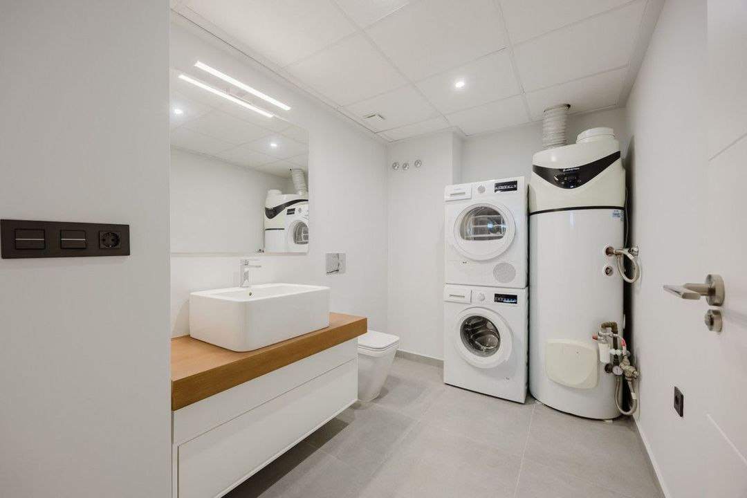 Guest WC + full laundry area (Siemens washing machine & Siemens dryer)