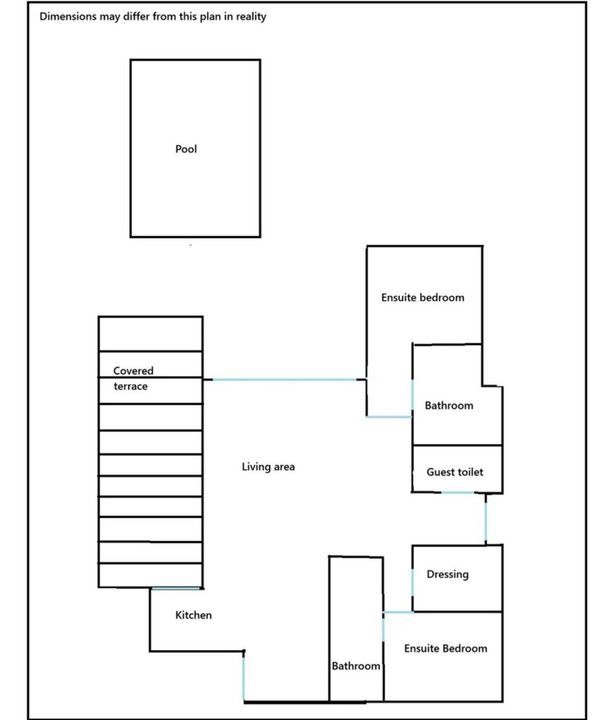 Geniet van het mediterrane buitenleven op het terras op het oosten, met uitzicht op een prachtig aangelegde tuin vol palmbomen, bloemen en fruitbomen. Er is een overdekt terras met een ingebouwde barbecue, perfect voor gezellige avonden. Het privézwembad met brede trap is ideaal om te ontspannen en daarnaast heeft u toegang tot een gemeenschappelijk zwembad binnen de urbanisatie.