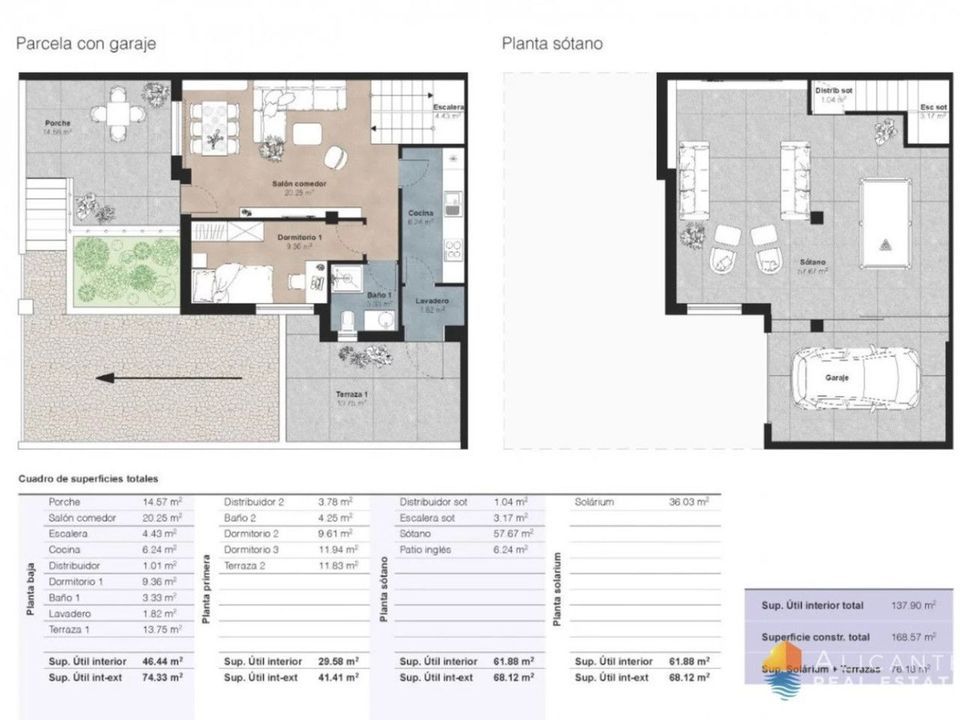 Wij presenteren deze nieuwe en ongebruikte woning, gelegen in een van de meest bevoorrechte en waardevolle gebieden van de Costa Blanca Zuid. Het huis ligt op slechts 1 km van de prestigieuze golfbaan La Finca en biedt een ideale locatie voor golfliefhebbers en rustzoekers, maar met uitstekende verbindingen, dicht bij de snelweg en een korte autorit van stranden, luchthavens en nabijgelegen steden. Het bevindt zich op slechts 6 km van het centrum van Algorfa.De rijwoning heeft 3 slaapkamers en 2 badkamers, een ruime woonkamer en keuken, ontworpen om te genieten van lichte en functionele ruimtes. Buiten is er een gezellige veranda, terrassen op de eerste en tweede verdieping en een solarium, allemaal met uitzicht op het spectaculaire berglandschap.Een van de grootste attracties is de 57 m² grote kelder-garage, met eindeloze mogelijkheden: werkplaats, recreatieruimte, wijnkelder of opslag. Daarnaast kan er in de tuin een privézwembad worden gebouwd, aangepast aan jouw levensstijl.De woning ligt direct achter een winkelcentrum met restaurants, wat gemak en toegang tot diensten combineert met de rust van de woonwijk. De locatie is onovertroffen: slechts 15 minuten van de stranden van Guardamar del Segura, 35 minuten van de luchthaven Alicante, en dicht bij stedelijke centra zoals Almoradí, Benijófar, Ciudad Quesada, Torrevieja en Orihuela Costa, waar je grote winkelcentra en diensten vindt.Dit is een unieke kans om een moderne woning te verwerven in een exclusieve en perfect verbonden omgeving, een perfecte optie voor golfliefhebbers.Aarzel niet om contact met ons op te nemen voor een bezichtiging!
