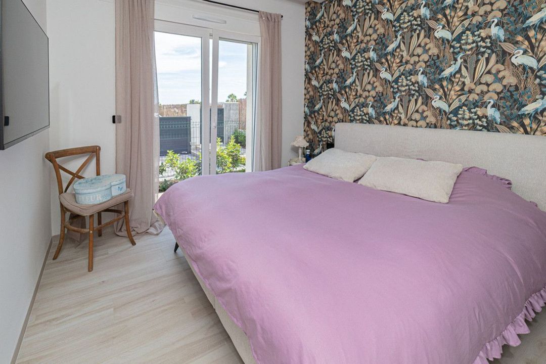 We are pleased to present this stunning luxury villa with panoramic views due to it´s elevated position at the 5 star La Finca Golf course. This impressive modern home is a perfect example of a resale of a new build without the wait and packed with luxury extras. The home offers a vast living/dining space, typically not seen in such homes, and offers the perfect area for leisure and entertainment, there is still ample space for a formal dining area or you can sit at the large island leading to the high end kitchen, which features floor to ceiling integrated cabinetry, ample work top space and top of the range white goods, plus leading out to a utility area and to the side patio terrace. The home offers 3 bedrooms, the master suite comprises a spacious double bedroom with patio doors to the garden and sun terrace, large walk in dressing room, with ample storage and floor to ceiling mirror, plus luxury shower room with his and hers sinks. The further 2 guest bedrooms both feature integrated wardrobes with ample storage space and share a further modern shower room. The whole home inside presents like a show room and has been made unique by the owners eye for detail and shows clearly their passion for interior design. Each piece and all decor has been lovingly chosen to integrate sympathetically with the wood and stone design, yet brings a touch of class to each room. The villa is set on a low maintenance plot of over 400m2 with sun terrace to the front offering some shade from the Spanish sun and is the perfect space for al fresco dining, likewise a sunny corner along with an summer kitchen/bar area offers the ideal spot for entertaining. The villa of course offers private swimming pool to cool off in the height of summer and the remainder of the plot is low maintenance with high quality tiles, gravel and artificial grass, a easy to access driveway offers secure gated parking, although there is ample quiet street parking outside the villa. Boasting stunning unobstructed mountain and country side views due to it´s elevated position this home offers everything a discerning buyer could wish for. This stunning villa will be sold part furnished although inventory can be discussed dependent on offers and is sold with many extras including integrated white goods, air conditioning, remote controlled blinds and gates, plus much more. Located a mere 200m to the La Finca Golf hotel Spa and club house , ideal for golf lovers for those extended holidays or ideal for permanent living as under 3km to both the traditional village of Algorfa which offers Spanish charm,local restaurants, bars, local shops and the traditional village square and the commercial area at La Finca also noted for some quality restaurants, cocktail bars and much more. Around 17km to the beaches of Guardmar del Segura , La Mata and Torrevieja, meaning you are never far from the coast. This home must be seen to be appreciated and is even more stunning in real life. Contact us today for your viewing