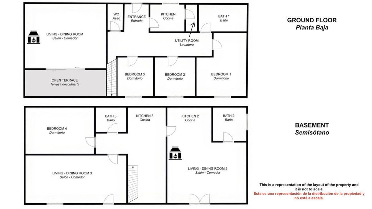 The villa is currently divided into 3 separate living areas comprising 2 living rooms, 4 bedrooms, 3 kitchens, 3 bathrooms and a WC / cloakroom.