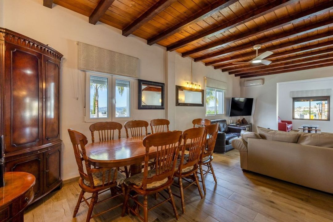 This spacious six-bedroom, five-bathroom villa is distributed over two floors and provides a varied and wide range of dining, lounge, seating and living areas most of which overlook the swimming pool and terraced areas with near infinity and beyond views. The property is accessed by a concrete driveway and there is sufficient hard standing for 10 plus cars. The solar panels are located away from the property, close to the hard standing, car parking area.