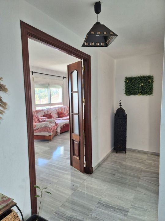 Het appartement bevindt zich op de middelste verdieping van een verhoogd gebouw in Alhaurín Golf. U kunt het portaal bereiken via trappen of een lift. Bij binnenkomst in het appartement komt u in een hal; aan de rechterkant bevindt zich een volledig uitgeruste keuken en aan de linkerkant de hoofdslaapkamer, met ingebouwde kasten en een en-suite badkamer met een bad/douchecombinatie. U kunt het omsluitend terras betreden dat is voorzien van glazen gordijnen. Terug naar de hal komt u in de woon-/eetkamer met een groot raam en toegang tot het grote, afgesloten terras met glazen gordijnen, waar u kunt genieten van de ochtendzon en winterdagen, en ze volledig kunt openen in de zomer. Terug in de hal bevindt zich aan het einde een deur die leidt naar de tweede badkamer en 2 tweepersoonskamers met ingebouwde kasten. Er is airconditioning voor warm en koud in alle slaapkamers en de woonkamer. De prijs is inclusief een parkeerplaats en een opslagruimte.