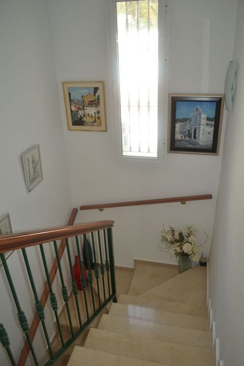 U betreedt de woning via de voortuin, waar u een eigen parkeerplaats heeft. U gaat een paar trappen op naar het hoogste niveau waar de woning en terrassen zijn. U heeft een groot onderhoudsvriendelijk terras aan de voorzijde met een overdekt terras met mooie zithoek en een prachtig uitzicht op de golfbaan eb de zonsondergang. De woning is verdeeld over twee verdiepingen, als u aan de linkerkant binnenkomt, heeft u een complete badkamer, een trap om naar het 2e niveau te gaan en een kleine berging. Voor u is de grote volledig uitgeruste keuken met een deur die toegang geeft tot het achterterras en de tuin. Vanuit de gang naar rechts heb je een grote woon/eetkamer en airconditioning. Boven recht voor u heeft u de hoofdslaapkamer met airconditioning, inbouwkasten, terras en ensuite badkamer. Links en rechts heb je de andere 2 slaapkamers met inbouwkasten en een badkamer om te delen.