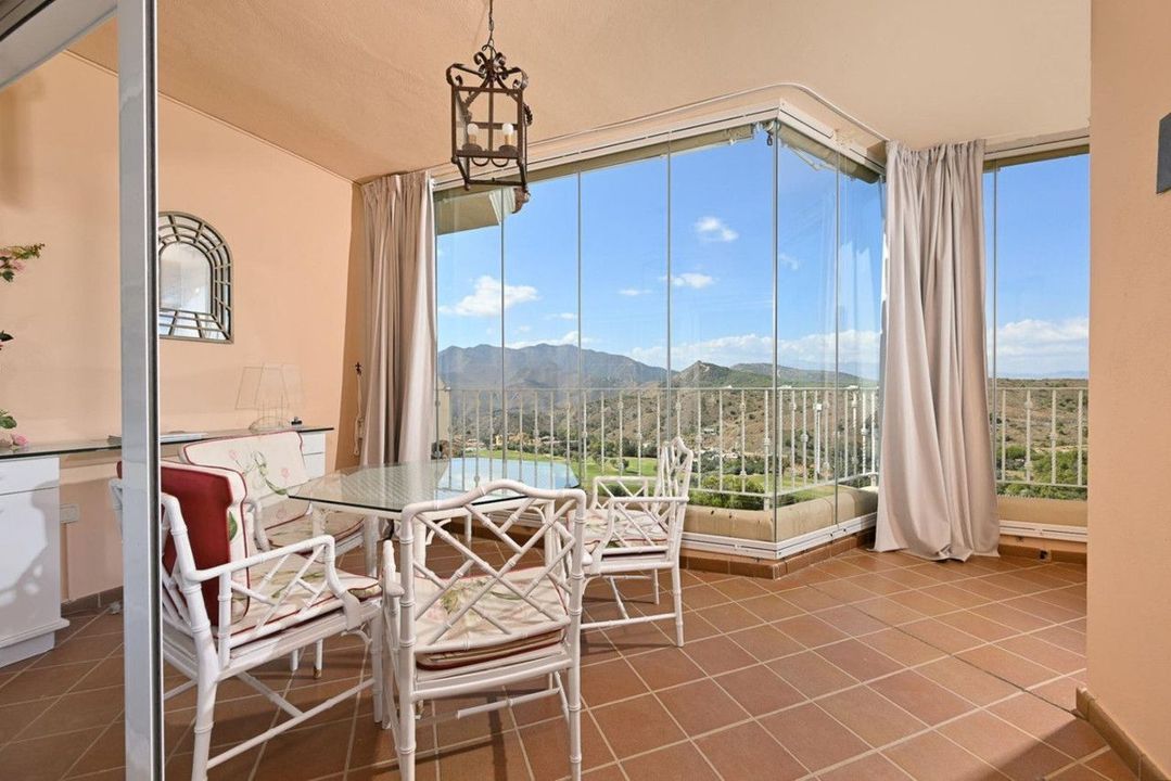 Stunning duplex in Alhaurin Golf with exceptional views of the golf course and in an impeccable condition. The property is very spacious and consists of a large living-dining room with a fireplace opening onto a fabulous and spacious fully glazed terrace with spectacular views of the course. There is also a large fully equipped kitchen as well as two double bedrooms, one en suite and with direct access to the terrace as well as a second bathroom. Upstairs there is a third bedroom and another bathroom and an additional bonus is a second summer lounge ideal for family gatherings. From here we access to a beautiful terrace with a barbecue area and unbeatable 360º views. Also there is a parking space, storage room, swimming pool and communal gardens. A property with many possibilities and great potential.