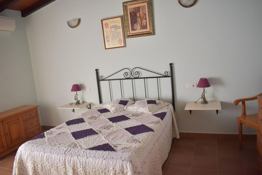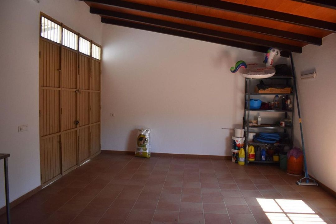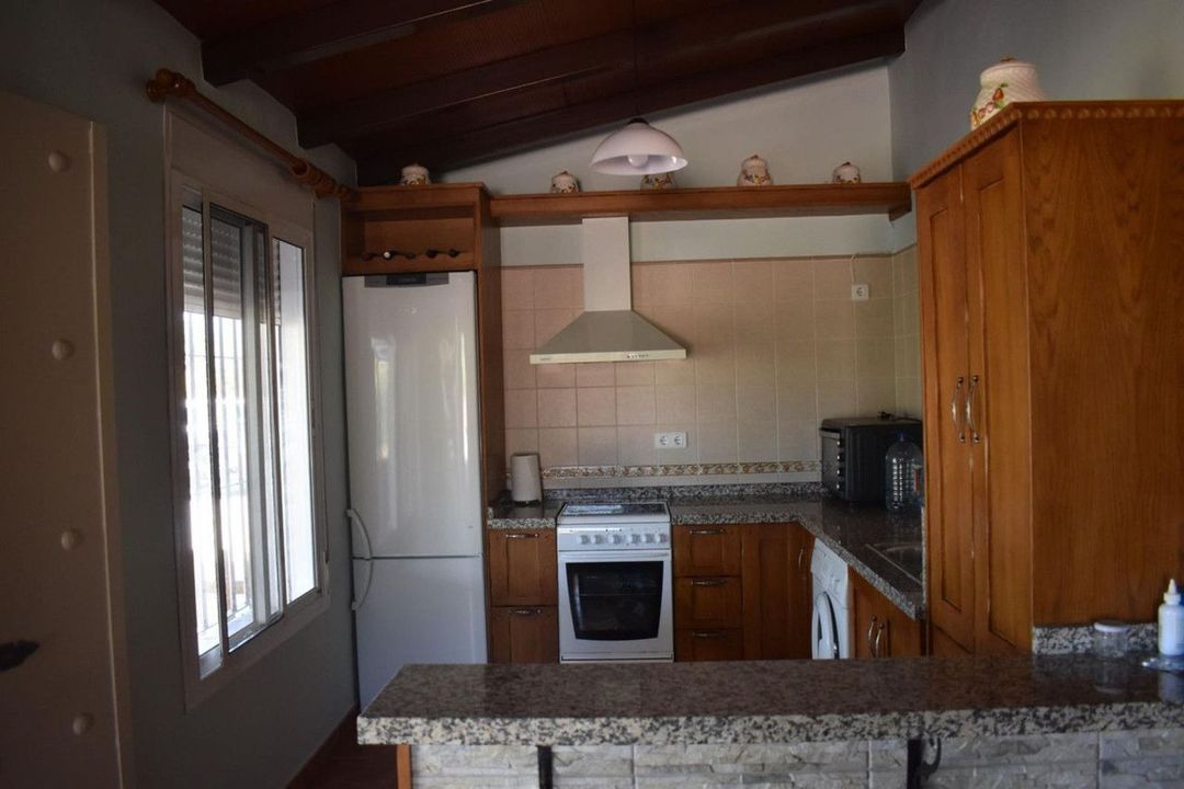 Upon entering the house we have a living-dining room with wooden beams and access to the terrace, a fitted kitchen, a large bedroom with a built-in wardrobe and a full bathroom, as well as a large room that could easily be converted into other bedrooms and a bathroom.Outside there is a large parking area, barbecue as well as 56m2 chicken coops ideal for stables. The plot is planted with a variety of fruit trees (walnut, fig, olive, orange, custard apple...), fully fenced and with its own well registered with the Junta.