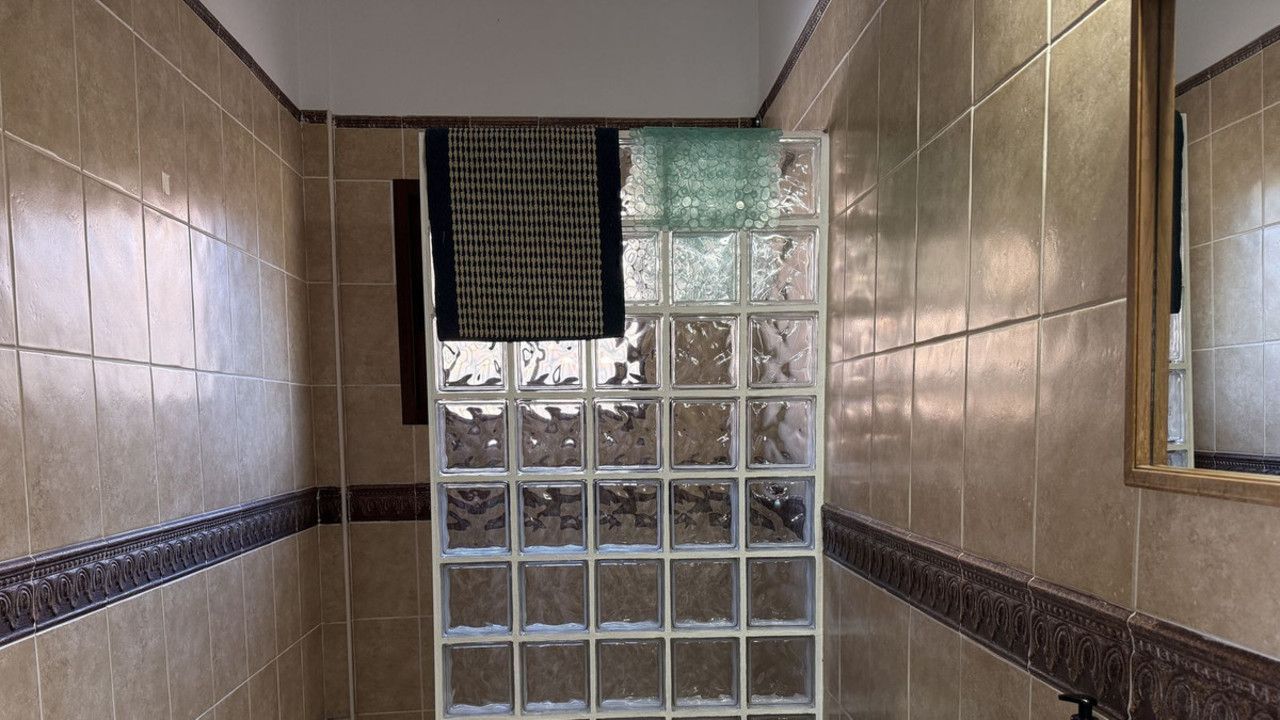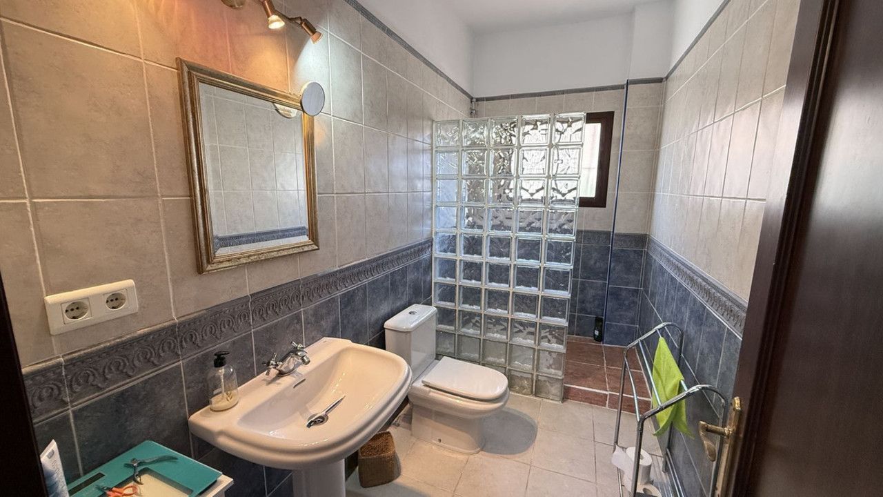 The ground floor of the villa is finished in a rustic style and benefits from a generous living room with fireplace, fully fitted kitchen with utility room, 3 double bedrooms (all with fitted wardrobes), 2 bathrooms, and a guest WC.