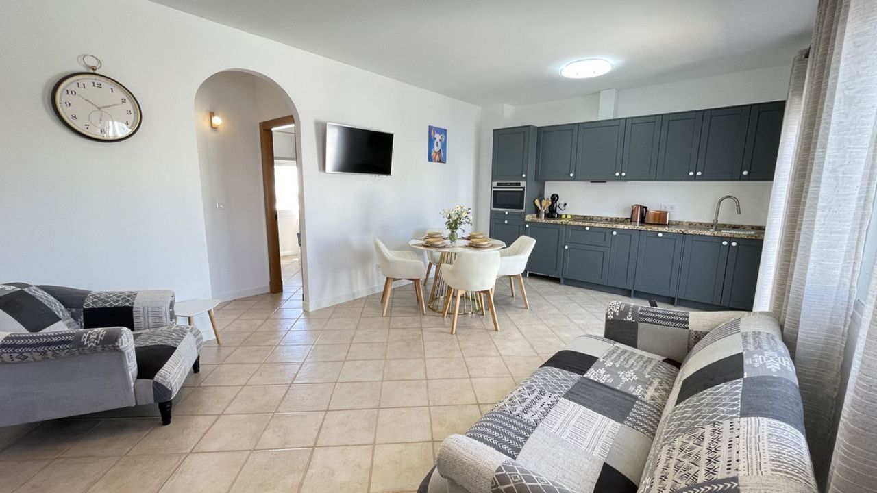 Upon entering the ground floor, you are greeted by a welcoming entrance hall that leads into the first apartment. This cosy yet spacious apartment features a comfortable living room, a generously sized bedroom, and a contemporary shower room. The highlight of this apartment is its large, modern family kitchen, complete with a separate dining area that opens out onto an expansive patio—perfect for enjoying the Andalusian sunshine and al fresco dining.