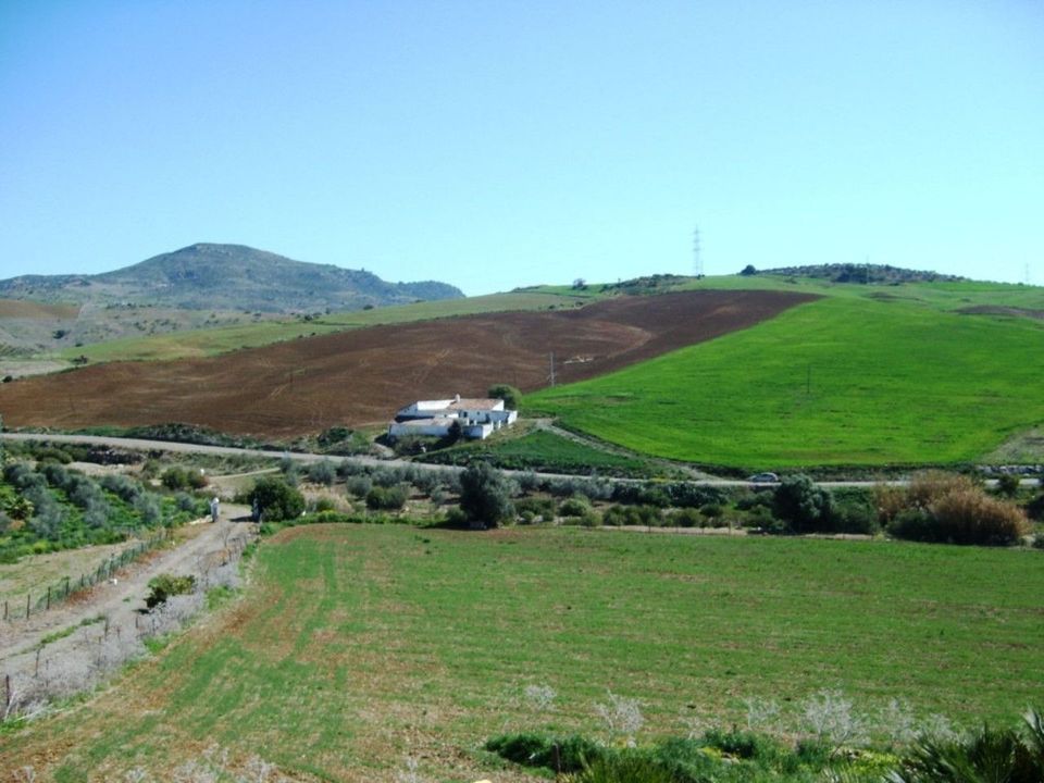 743-V For sale a farm with a house of 150 m2, all on one level consisting of very spacious lounge/dining room with fireplace, fitted kitchen, 2 bedrooms, 2 bathrooms, pantry, storage room, terrace with views to the Guadalhorce Valley, has 200 000 m2 of fenced plot, perfect for people who loves quitness, nature. It is permited to have horses on the plot. This property has got the 'codigo gandero' and also the 'codigo de explotacion de caballos y toros' licenses which are very hard to get in order to make any profits with farming business. This property has been renovated with a new bullring and stable to breed an maintain horses which dont appear in pictures. There is a stream with water at the entrance of the property and has water and elecricity from the city and has also several private water wells. The farm is located near the centre of Alora and has excellent acces to main roads. The road is paved till the entrance of the property.
