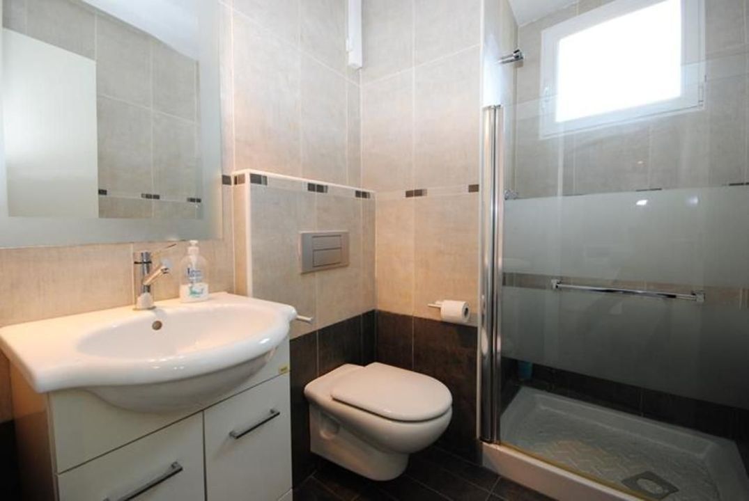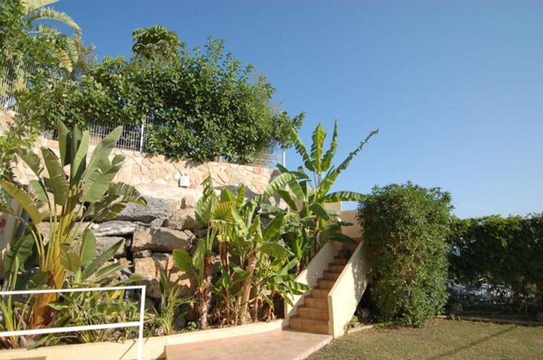 Op het niveau van de entree is een zeer zonnig en deels overdekt terras met privé zwembad van 8m x 4m. Er is een panoramisch uitzicht over de bergen en zicht op zee. De zeer goede ligging maakt dat het tot op het laatste moment van de dag mogelijk is om te genieten van de zon!