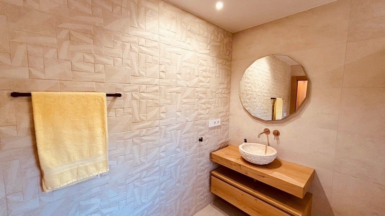 Buiten is het een waar toevluchtsoord. Verzorgde tuinen en ruime terrassen leiden naar een indrukwekkend infinity-zwembad van 6 x 12 meter, aangevuld met een 3 x 6 meter strandgedeelte—perfect om te ontspannen, gasten te ontvangen of rustige momenten met familie en vrienden te beleven. Elk element van deze villa is ontworpen om een exclusieve levensstijl te bieden, gekenmerkt door comfort, privacy en spectaculaire Mediterrane uitzichten.