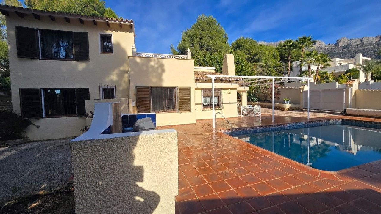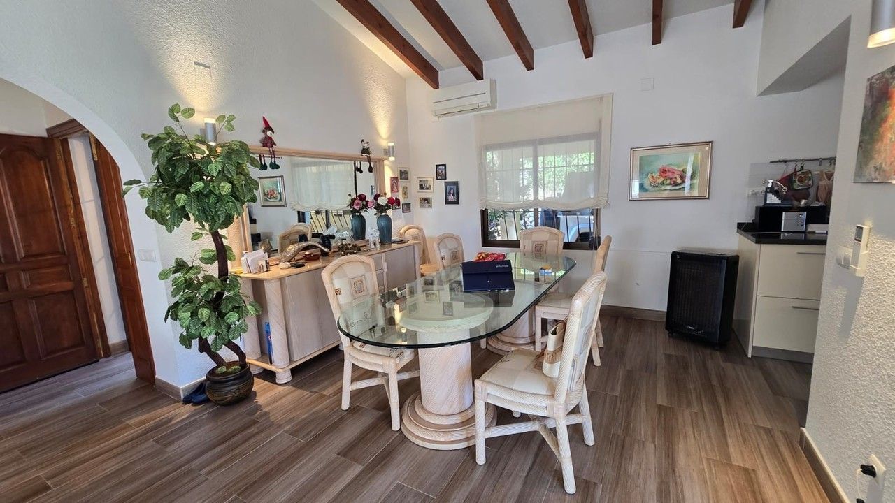 Located just 6,000 meters from the sea and in close proximity to the exclusive area of Altea la Vella, the villa immediately captivates with its blend of old-world charm and modern design. The spacious interiors are enhanced by beautifully preserved wooden beams that bring warmth and character to the living spaces, while large windows allow natural light to fill the rooms.