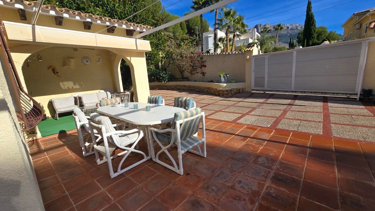 Located just 6,000 meters from the sea and in close proximity to the exclusive area of Altea la Vella, the villa immediately captivates with its blend of old-world charm and modern design. The spacious interiors are enhanced by beautifully preserved wooden beams that bring warmth and character to the living spaces, while large windows allow natural light to fill the rooms.