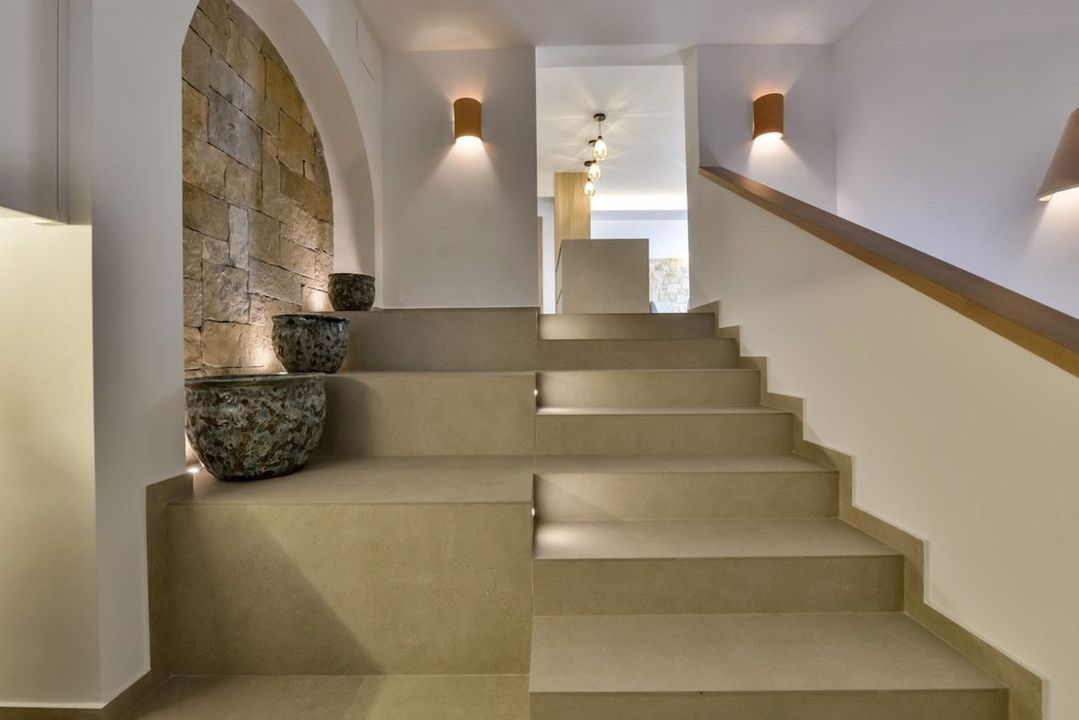 Binnen vindt u een lichte, open woonruimte met grote houten ramen en natuurstenen details die zorgen voor een warme, prettige sfeer. De keuken is volledig uitgerust met hoogwaardige apparatuur en Arklam werkbladen. Elke slaapkamer heeft toegang tot een eigen terras. Daarnaast is er een aparte wijnkelder, een speelkamer en diverse zitplekken buiten.