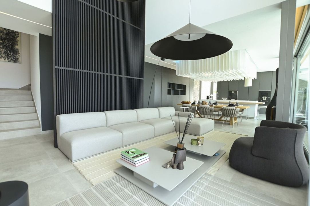 The villa was designed by professional interior designers with a total value of more than 140,000 euros. Some of the many details include a Bang TV and sound system, Lutron blinds, Wastberg lamps, Paola Lenti garden furniture, various paintings and decorations by Tulip Design, Desiree deck chairs, Antonio Lupi pots and much more.