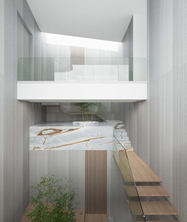 Niveau 2: vier ruime slaapkamers, elk met eigen badkamer en inbouwkasten. Alle slaapkamers en badkamers hebben vloer‑tot‑plafond glas en een groot tweepersoonsbed.