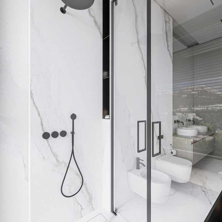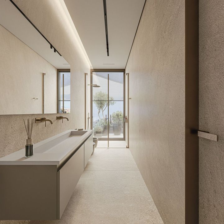 Bij het naar buiten stappen kunt u genieten van aangelegde tuinen en meerdere terrassen met ruime zones voor ontspanning in de open lucht. Het centrale element is het spectaculaire infinity-zwembad, dat lijkt op te gaan in de horizon en de perfecte plek biedt om af te koelen en te genieten van de mediterrane zon.