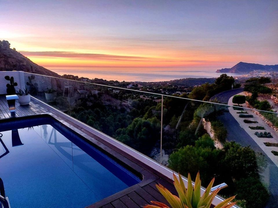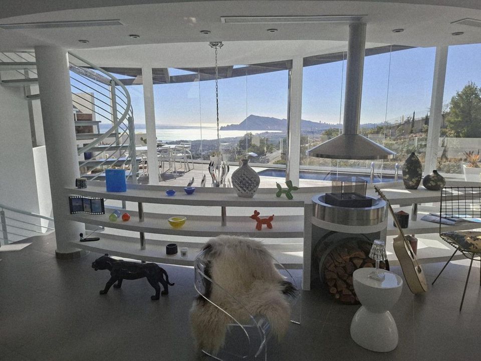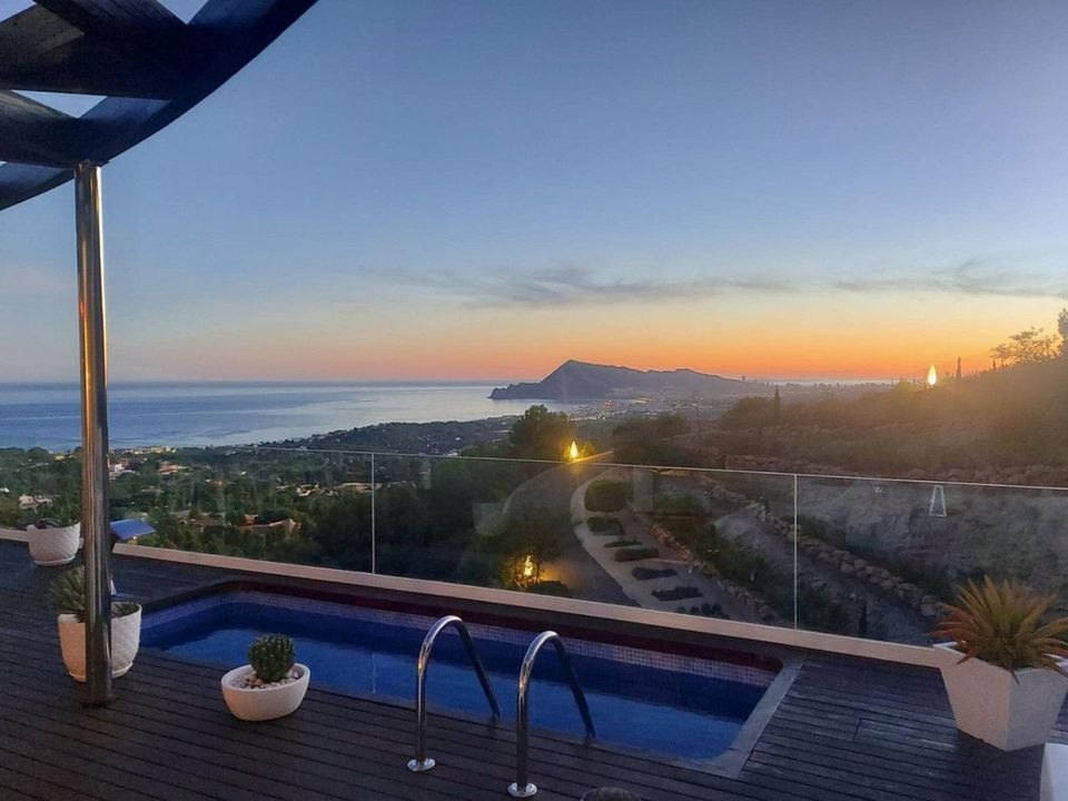 Elegant villa in Altea with spectacular panoramic views of Altea Bay and the Mediterranean Sea ????This stunning contemporary villa has been designed to capture breathtaking panoramic views of Altea Bay and the Mediterranean Sea ????. Set in an elevated position and facing south ☀️, it combines modern architecture with luxury finishes and meticulous attention to detail.The property features 4 bedrooms and 5 bathrooms, with a built area of 246 m² distributed over 3 levels on a sloping plot. Its modern design embraces open, bright spaces with large windows that frame the sea views. It offers spacious terraces, a private infinity pool ????♂️, and parking for two vehicles ????????.The fluid layout allows natural light to flood every room, creating a constant connection with the surroundings and highlighting the impressive views of Altea Bay. The main living area opens directly onto the terrace and pool area, providing the perfect space to relax or entertain in a unique coastal setting ????.Key features ✨• Spacious living areas: open-plan living and dining spaces with a seamless indoor–outdoor flow, ideal for entertaining guests or enjoying peaceful moments ????️????.• Modern kitchen: fully equipped kitchen with high-end appliances, designed to combine functionality, style, and comfort ????️.• Luxury bedrooms: elegant bedrooms, each with an en-suite bathroom and spectacular views, designed as true private retreats ????????.• Infinity pool and terraces: an inviting infinity pool and generous terraces, perfect for relaxing, outdoor dining, and enjoying the Mediterranean scenery ????????.Equipment and extras ????????Automated garage door, video surveillance system ????, double-glazed Climalit windows with electric blinds, hot/cold air conditioning ❄️????, built-in wardrobes, lift ????, laundry room, storage room, barbecue area ????, interior and exterior LED lighting, and a saltwater swimming pool ????.Thanks to its privileged location, very close to Altea and with easy access to beaches, shops, and restaurants ????️????️, this villa offers the perfect balance between tranquility and proximity to all amenities.If you are looking for a modern and exclusive lifestyle with unrivalled views and maximum comfort, this villa is an opportunity not to be missed ✨????.