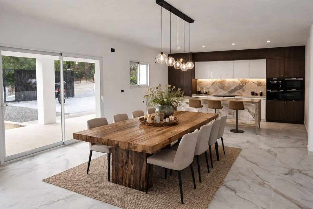 De belangrijkste woonruimte is ontworpen met een uitstekende overgang tussen binnen en buiten. De woonkamer en keuken zijn direct verbonden met een overdekte veranda, de perfecte setting voor dineren en ontspannen in de buitenlucht, genietend van het mediterrane klimaat en het uitzicht. De villa wordt opgeleverd met de constructie en basisafwerking volledig voltooid. Kopers hebben de mogelijkheid om hun gewenste keuken, badkamers, binnendeuren en afwerkingsdetails te kiezen binnen het inbegrepen budget. Dit stelt de toekomstige eigenaar in staat om de woning volledig naar eigen stijl en visie af te werken.