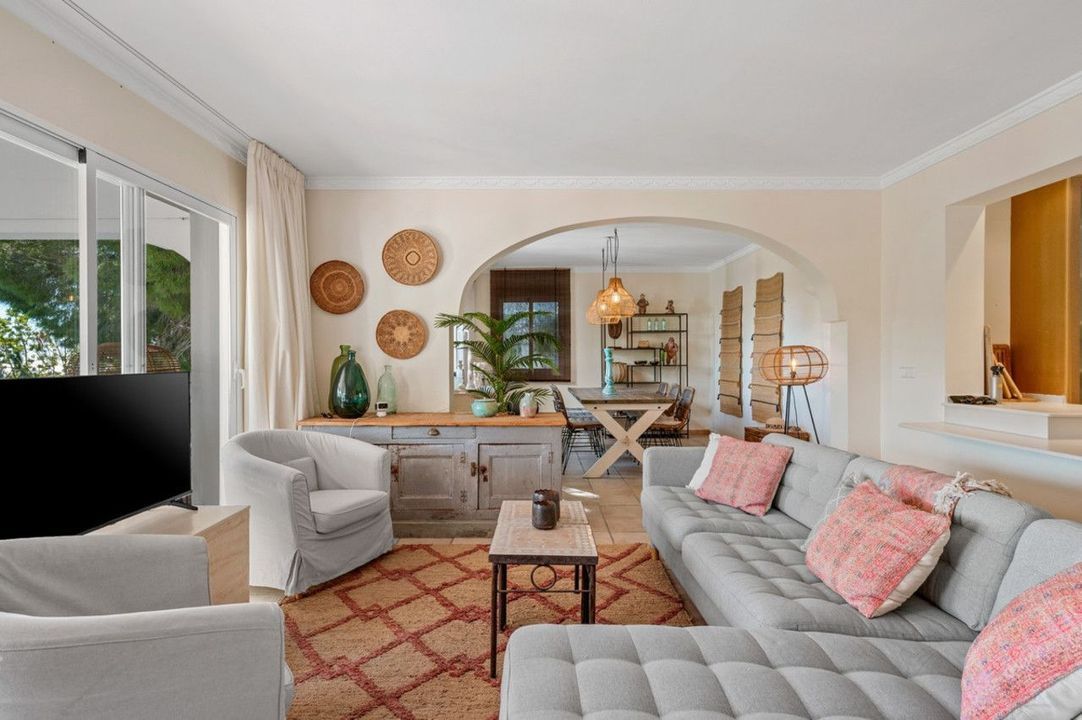 In de prestigieuze urbanisatie Galera Las Palmeras in Altea, op slechts enkele minuten rijden van de witte zandstranden, bevindt zich deze volledig gemoderniseerde villa in stijlvolle Ibiza-architectuur. Een uitzonderlijke combinatie van privacy, luxe en directe verhuurmogelijkheden.