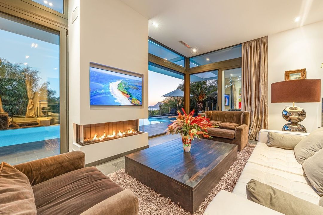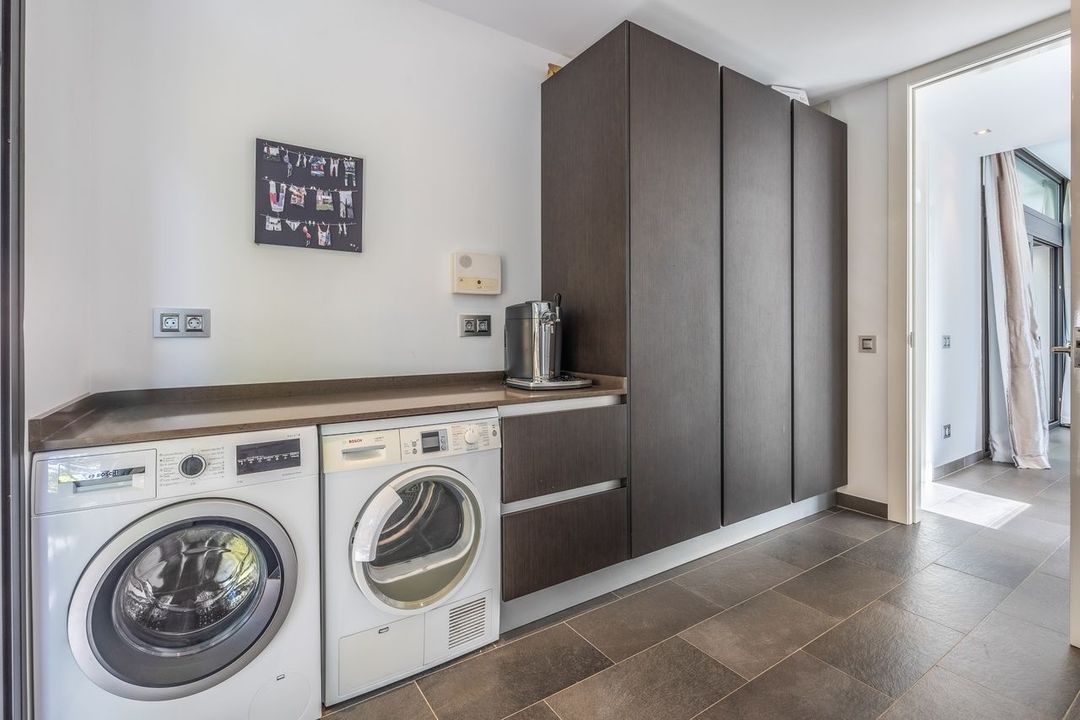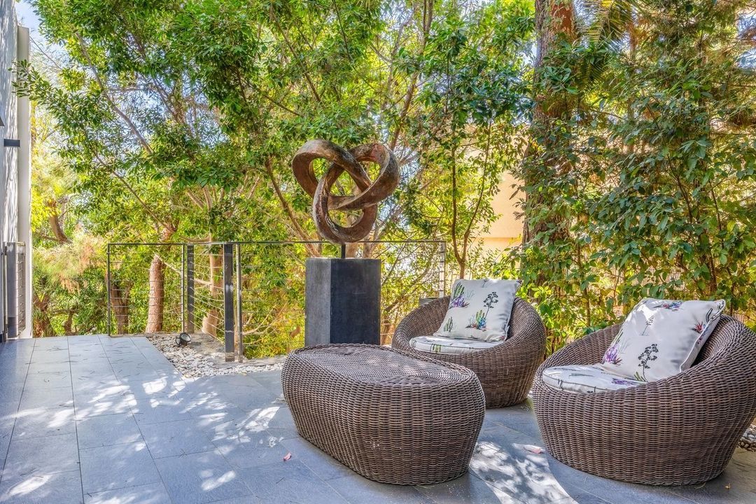 Stap naar buiten om een privéheiligdom te ontdekken: een zonovergoten terras met een overloopzwembad, omgeven door weelderig groen en volledige privacy. Boven biedt het indrukwekkende dakterras een tweede verwarmd zwembad, een jacuzzi, een buitenbar, een barbecueplek en een tropisch landschap - een idyllische omgeving voor bijeenkomsten bij zonsondergang en avonden bij de sterrenhemel.