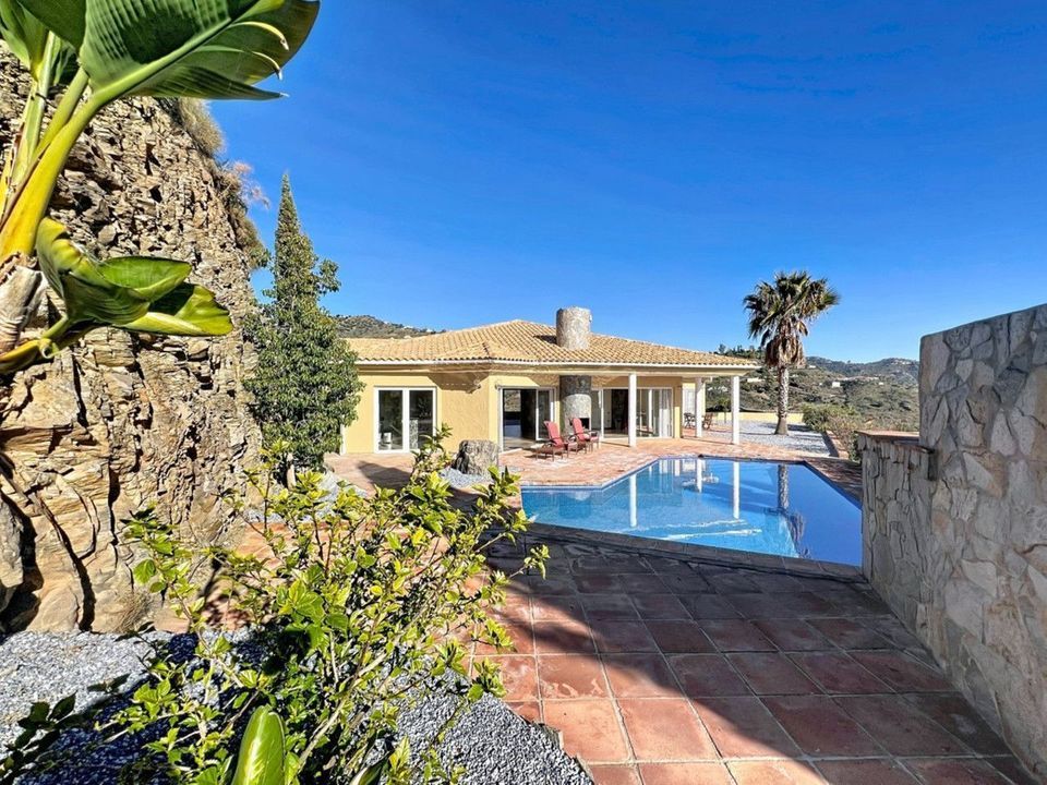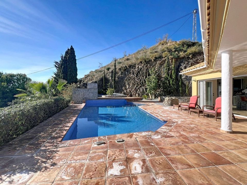 Deze prachtige villa in Algarrobo combineert ruimtelijkheid, licht en comfort en biedt een ideale levensstijl om te genieten van de rust en het klimaat van de Costa del Sol. In het hoofdgebouw vinden we een grote Amerikaanse keuken die opent naar de woon-eetkamer, die wordt gekenmerkt door lichtigheid en royale ruimtes, perfect voor familiebijeenkomsten of met vrienden. Het huis heeft twee slaapkamers, beide met eigen badkamers, wat comfort en privacy garandeert. Het pand heeft ook een gastenappartement, met een kleine keuken en een volledige badkamer, wat zelfstandigheid en flexibiliteit biedt voor familie of bezoekers. Buiten heeft de villa een privézwembad, een barbecueplaats, een wasruimte en een garage, evenals een groot perceel van 2.500 m2, ideaal om buiten te genieten, ontspanningsruimtes aan te leggen of een persoonlijke tuin aan te leggen. Het terrein biedt spectaculaire zee- en berguitzichten, wat unieke waarde en charme toevoegt. Een unieke, lichte en veelzijdige woning, perfect zowel als hoofdverblijf als tweede woning aan de Costa del Sol. We zijn verheugd dat we deze woning binnenkort aan u kunnen presenteren, hetzij persoonlijk of via virtuele bezichtiging. Omdat deze wereld uniek is - net als onze Axarquía. In Andalusië. Aan de Costa del Sol. Hier, aan de zonnige kant van het leven...