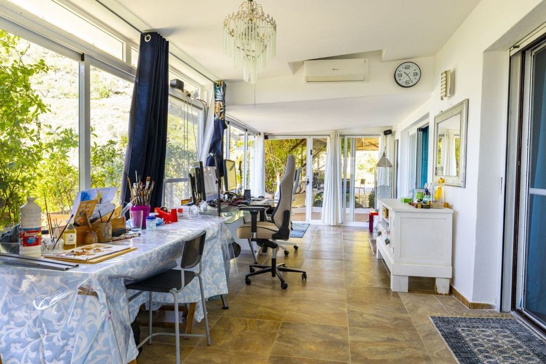Geniet van de overvloedige natuurlijke lichtinval en adembenemende uitzichten op de bergen en de zee vanaf de verschillende terrassen die het pand omringen. De prachtige privétuin en het overdekte verwarmde zwembad bieden een oase van rust en een perfecte plek om te ontspannen tijdens zomerse dagen.