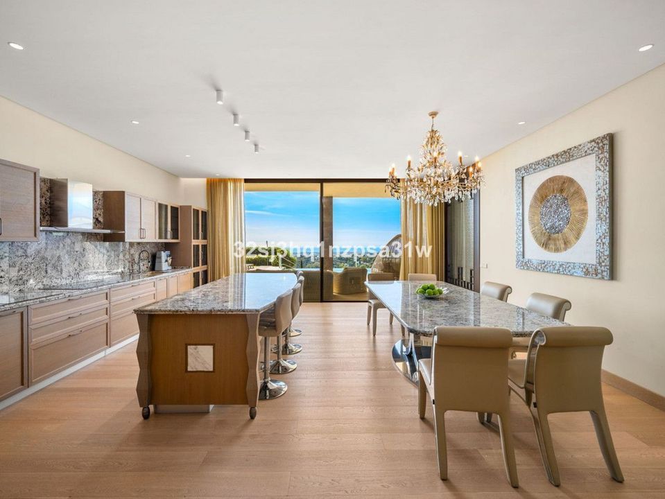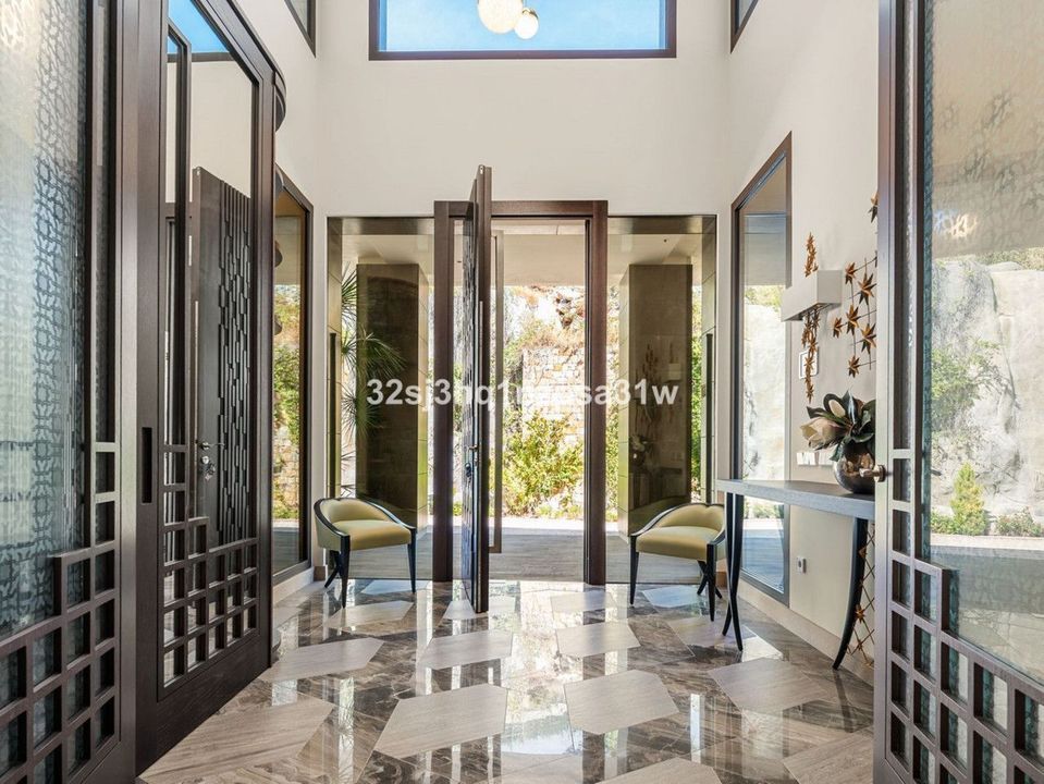 This elegant architectural masterpiece, featuring refined features, comprises a ground floor, a first floor, and a basement. It impresses with its spacious and bright living and dining areas, a modern and elegant fully equipped kitchen, 298 m² terraces, 9 suites with private bathrooms, a wine cellar, and a games room. In addition to the living, reception, and entertainment areas, this house also features a laundry room, a storage room, a dressing room, two guest toilets, and a full bathroom for the housekeepers. Glass doors and huge windows allow natural light to flood the entire house. The rooms open onto magnificent terraces, a subtropical garden with lush lawns, landscaped areas, and a sun terrace. A stunning 12 x 6-meter swimming pool with a sea salt filtration system invites you to cool off on hot days or host memorable parties all year round. The Marbella region is renowned for its climate, considered the best in continental Europe, and your pool is heated. A glass-enclosed gazebo and relaxation area complement a fully equipped kitchen, ideal for barbecues and al fresco dining. A private garage can accommodate four of your favorite cars. This high-end contemporary villa embodies the art of luxury living and is offered for sale with numerous features, including an elevator, parquet flooring, underfloor heating and air conditioning throughout, built-in wardrobes, LED lighting, and more. The neutral color palette creates a truly peaceful atmosphere. Ultramodern and relaxing blend seamlessly in this luxury property, seamlessly blending Mediterranean elegance and functionality.