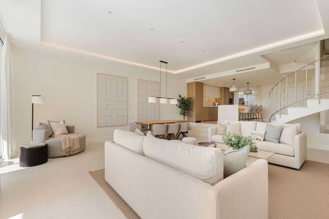 An exquisitely totally reformed townhouse located in the popular urbansiation of El Mirador de La Quinta in Benahavis. As you enter the property, you are greeted with an abundance of light, high ceilings and sea views through the extra high sliding terrace doors. The bespoke open-plan kitchen leads down to the extremely spacious living/dining room and straight out onto the covered terrace leading to the communal gardens offering stunning South-East facing views towards the sea and mountain. On the first floor you have 3 bedrooms and 3 bathrooms with the master bedroom having a generous walk in wardrobe, private terrace and a large bathroom suite with stunning views. On the third floor you have the 4th bedroom suite having access to 2 terraces also with stunning views. The townhouse was completely gutted and has been fitted with high quality materials throughout, the interior decoration and color scheme has been carefully selected creating a classy yet warm feeling. A truly magnificent townhouse in a very popular location.