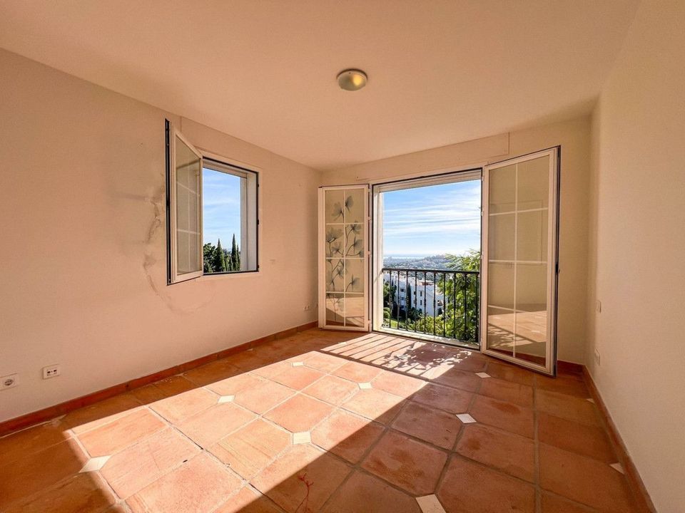 Set in one of the most exclusive areas of Benahavís, this spectacular five-bedroom, six-bathroom villa offers exceptional character and endless potential to become a true dream residence. Located on a 961 m² plot with a total built area of 565 m², this property enjoys breathtaking panoramic views stretching from the surrounding hills to the golf course and the Mediterranean Sea.
