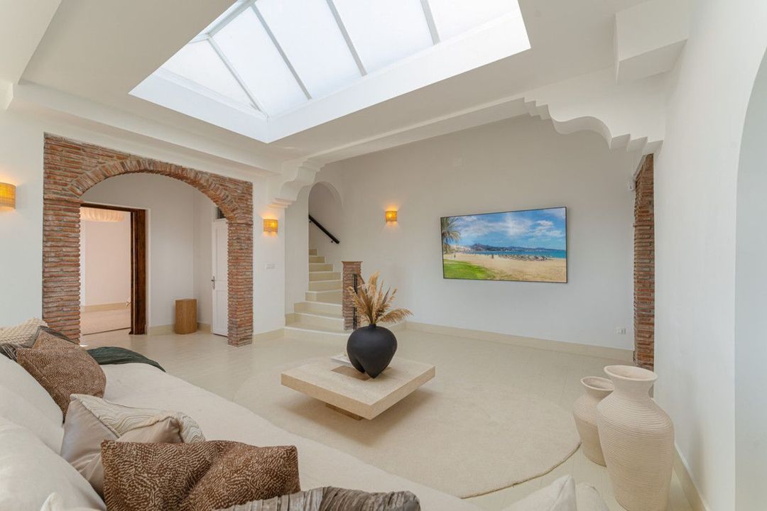 Villa in El Madroñal for sale, offering refined living within the exclusive gated community of El Madroñal 2 in Benahavís, Málaga. This six-bedroom villa with five ensuite bathrooms combines traditional Andalusian features with contemporary design. Built in 1988 and carefully maintained, the property covers 531 m² on an elevated 4.795 square meters plot, providing panoramic views of the Mediterranean Sea and surrounding mountains.