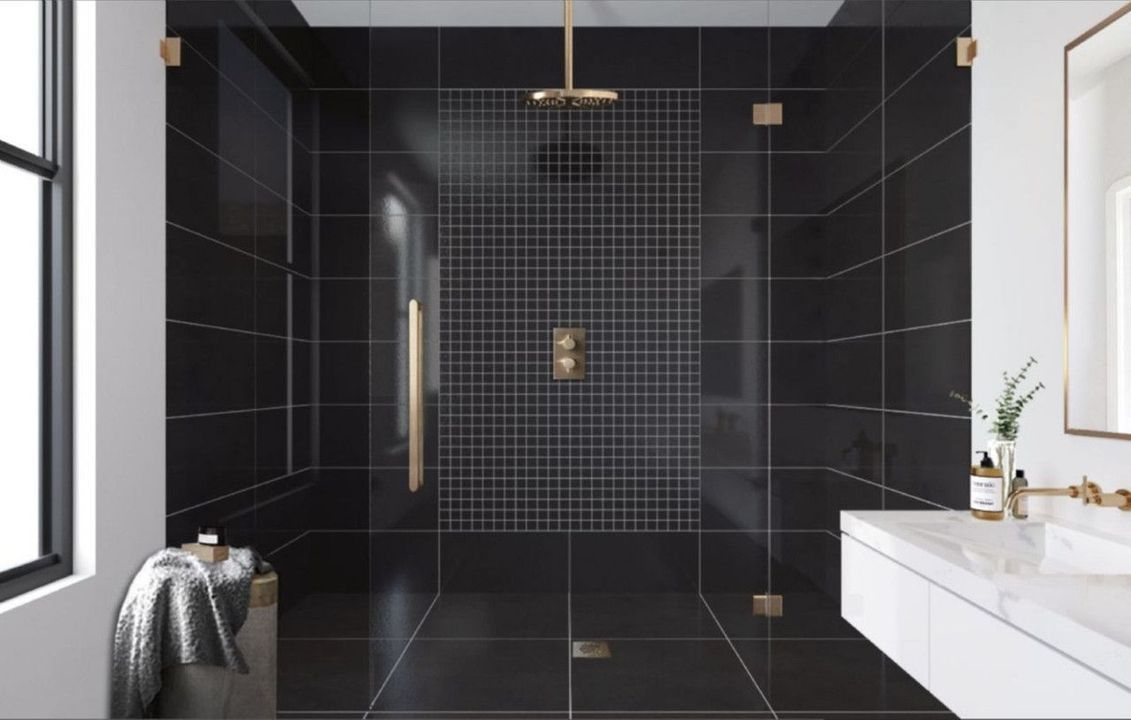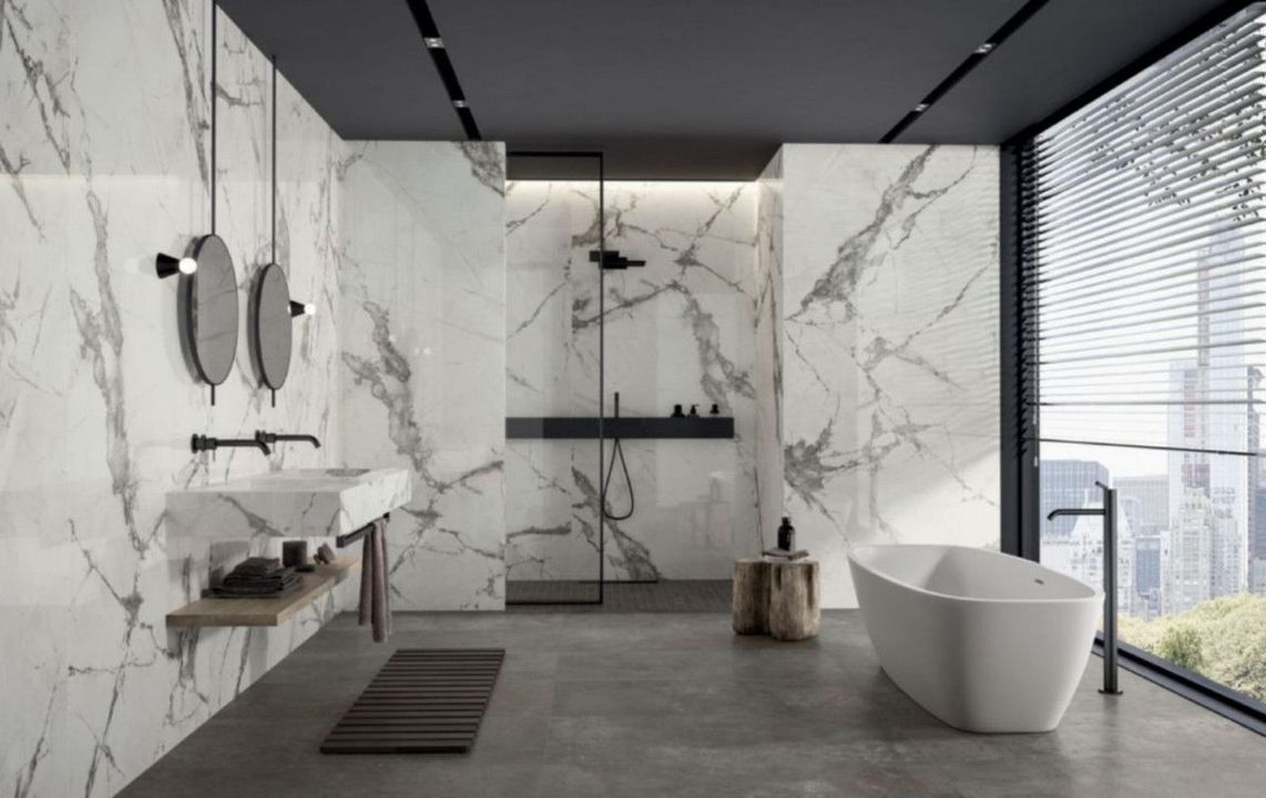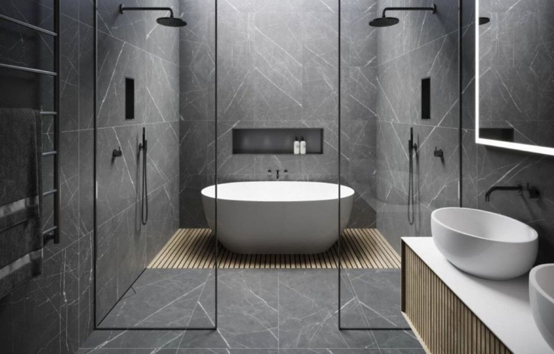 - Bathroom walls with COVERLAM plates (GRESPANIA) 2700X1200 (Colour to choose)