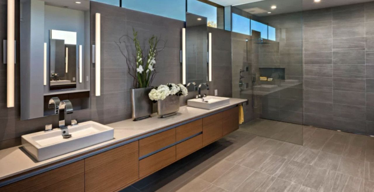 De foto's van de badkamers en keuken zijn slechts voorbeelden, de uiteindelijke keuze van de afwerking is aan de klant binnen de gekozen lijn die wij voorstellen.
