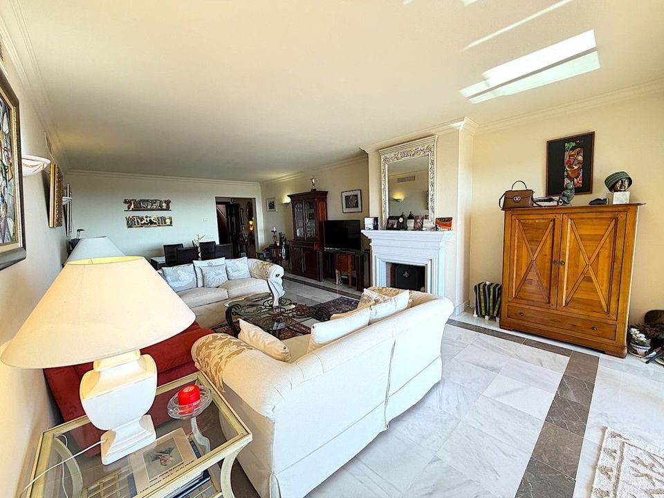 This refined residence offers an impressive open-plan living and dining area, centred around an elegant open fireplace and seamlessly extending onto a magnificent terrace. Here, uninterrupted panoramic views of the Mediterranean Sea and surrounding mountains create a truly breathtaking backdrop, perfect for sophisticated outdoor living and entertaining.