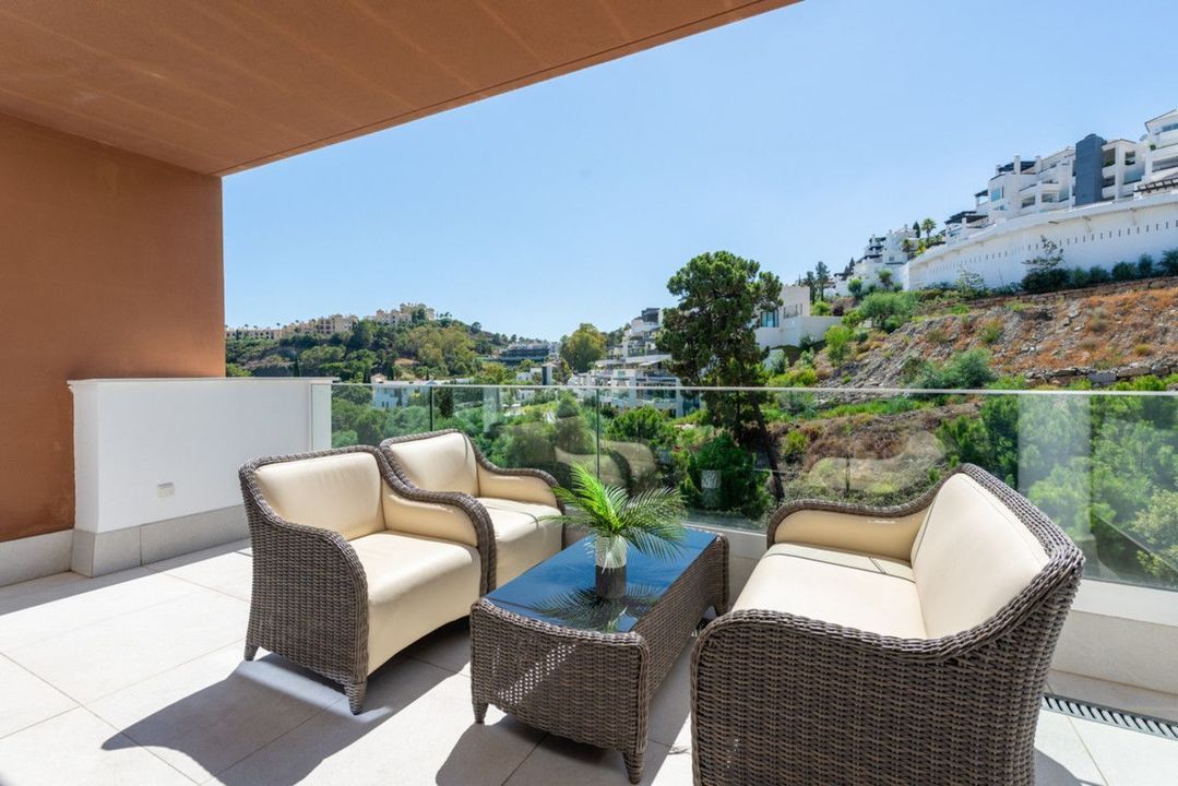 Groot, goed gepresenteerd penthouse met drie slaapkamers, gelegen in het populaire Alborada Homes complex, boven de La Quinta golfbaan en op korte rijafstand van de voorzieningen en stranden van Puerto Banus en San Pedro de Alcántara.