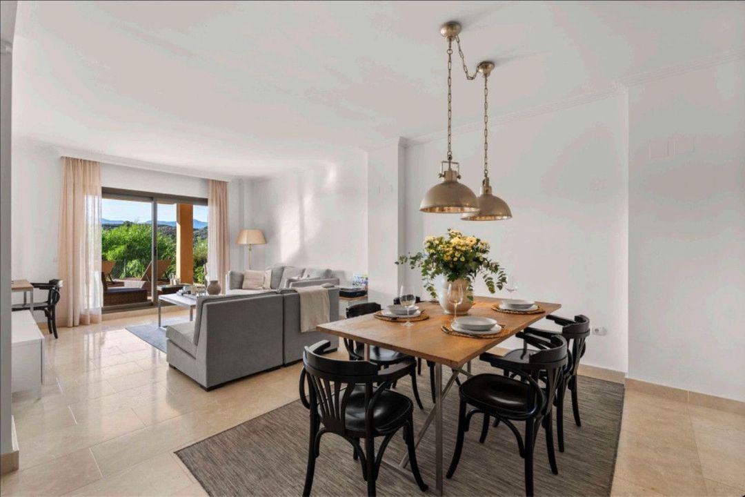 Welcome to this charming and comfortable 2-bedroom ground-floor apartment, offering beautiful views of the Mediterranean Sea and majestic mountains, situated in the prestigious gated community of Hacienda del Señorio de Cifuentes in Benahavís on the sun-drenched Costa del Sol. This secure, family-oriented resort boasts four swimming pools, stunning communal gardens, and a new gym currently under construction – all set within a low-density environment of 23 apartment blocks with plans for expansion, providing a resort-like atmosphere with 24-hour security and panoramic vistas over golf courses like Atalaya, the sea, Gibraltar, and even the African coast on clear days. Just 15 minutes from Puerto Banús' glamorous marina and the beaches, with easy A-7 access to Marbella or Estepona's historic old town, it's ideal for year-round living, holidays, or investment in Benahavís' thriving market, where similar properties see 10-15% annual appreciation and strong rental demand.