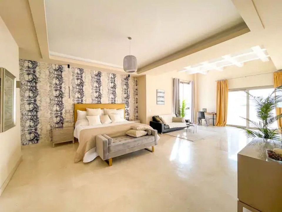 Deze prachtige villa is een open plant, en de plantage ligt op het terras en de tuin met een prachtig uitzicht op de zee en een oneindig groot zwembad, dat een zona chill-out met chimenea teweegbrengt. La villa cuenta con habitaciones con baño en cada piso, lo que le brinda 100% de privacy.