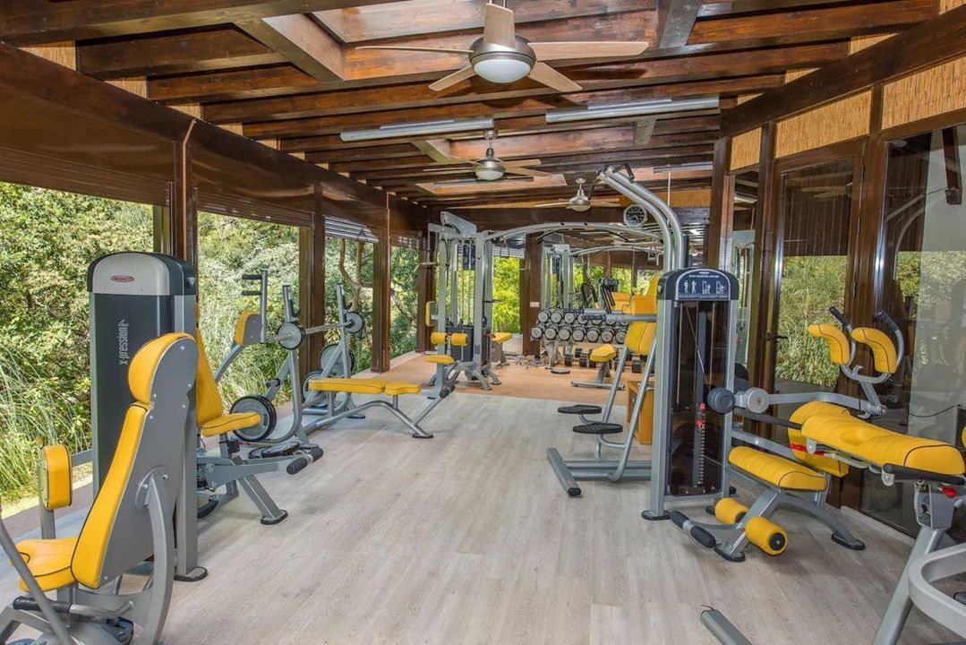 De prachtige lommerrijke tuinen leiden naar een glazen studio/yoga/meditatiehuis gebouwd in de heuvel en een kinderspeelplaats. Uiteraard beschikt de woning over airconditioning en videobewaking.
