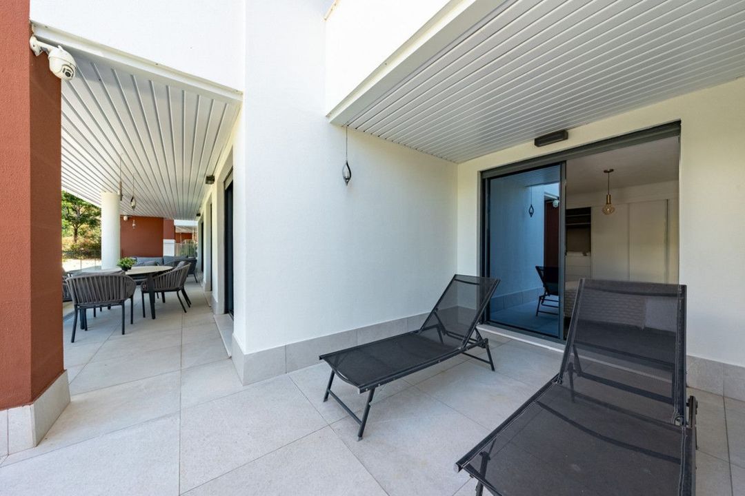 The property includes 1 private underground parking space, access to a communal swimming pool reserved for residents, and a gym with views of the sea and golf course.