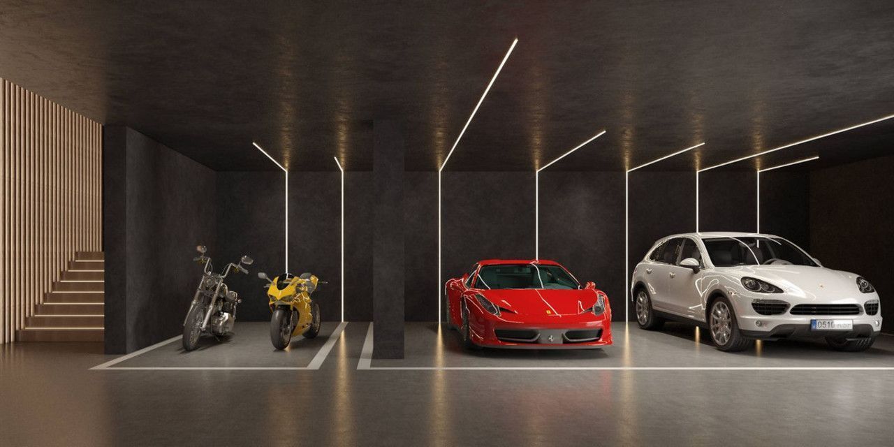 Onderaan bevinden zich de bodega, exclusieve garage voor 5 wagens, technische ruimten, gym en 3 suites met telkens dressing en badkamer.