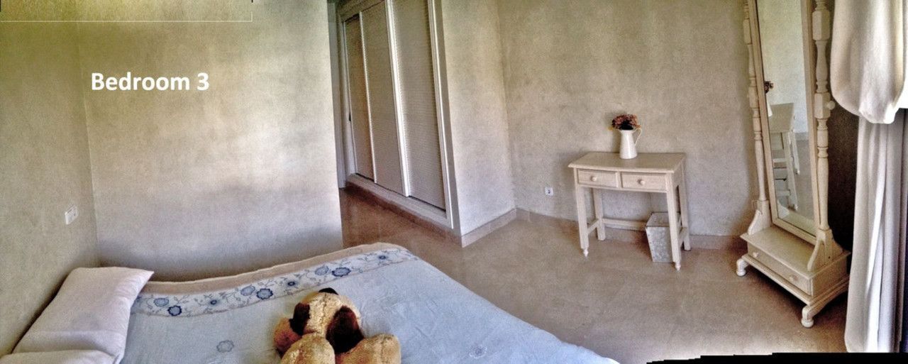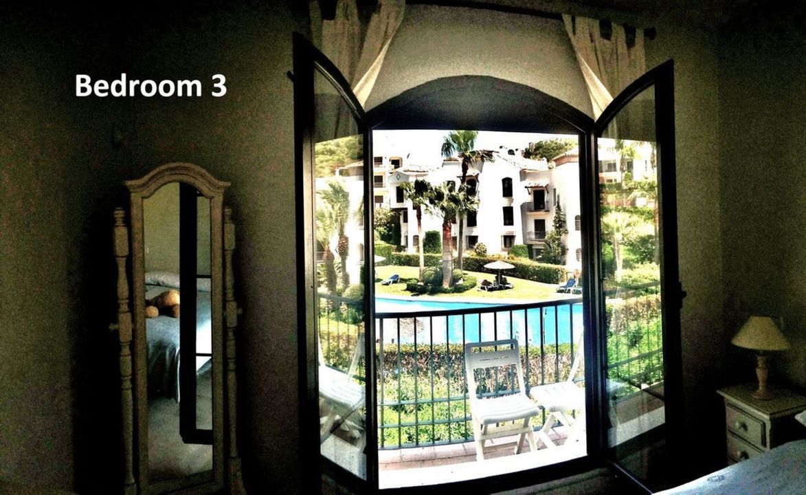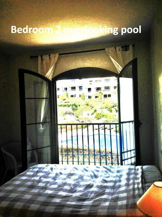 The main bedroom opens out onto the lower terrace looking over the golf course while the other 2 rooms open with balconies to the phase 2 swimming pool.