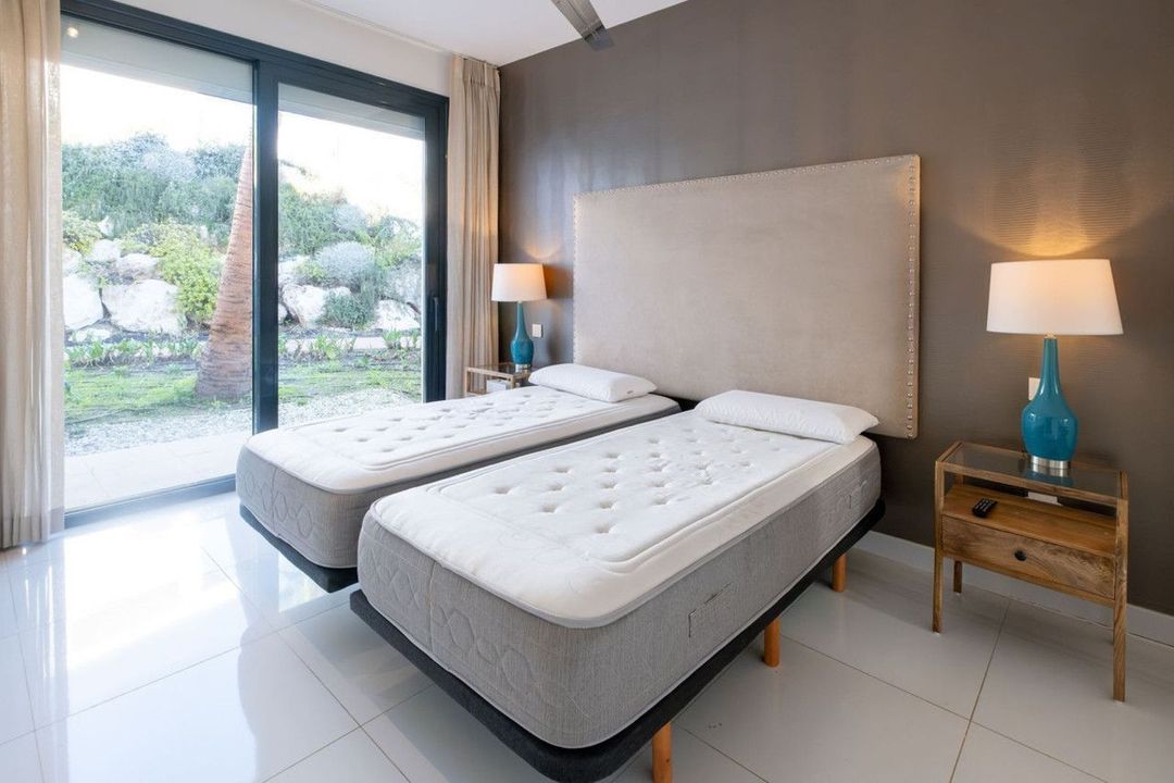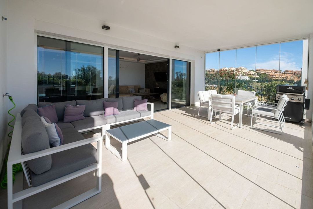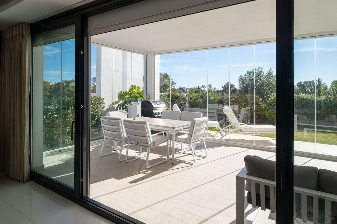 Discover the perfect blend of modern luxury and tranquility in this beautifully renovated 3-bedroom ground-floor apartment located in the prestigious Atalaya Hills. Offering breathtaking views over lush gardens, this stunning corner unit provides exceptional privacy and a seamless indoor-outdoor living experience.