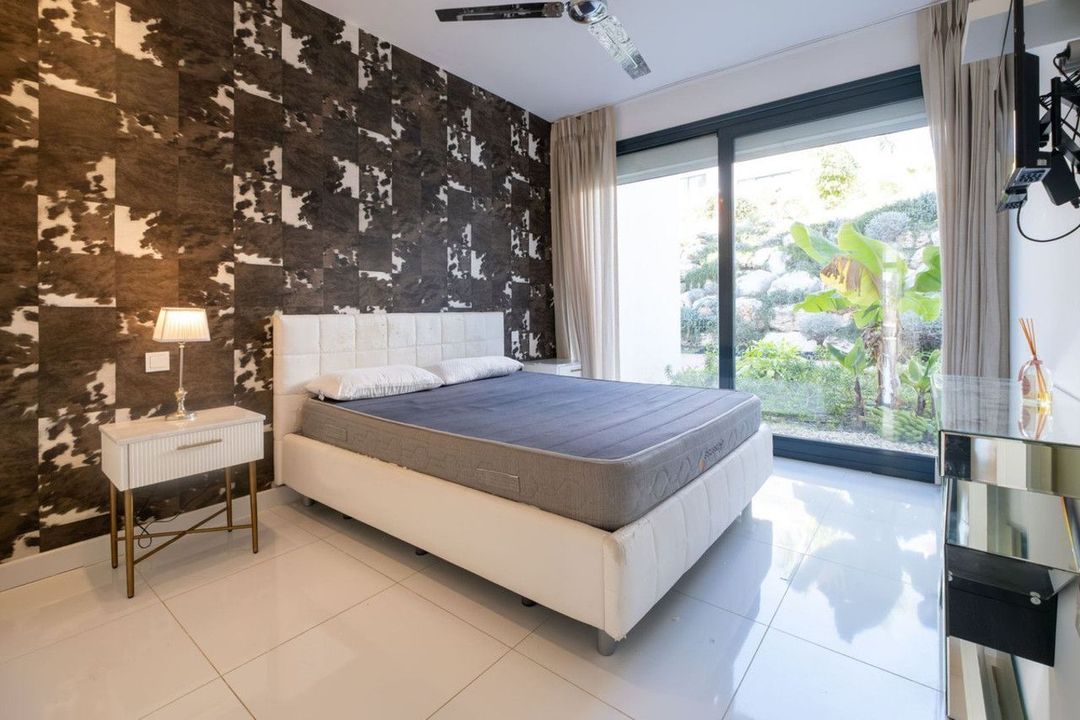 This exquisite apartment features 3 spacious bedrooms and 2bathrooms, including one en-suite. With a south-facing orientation, it enjoys abundant natural light throughout the day. The apartment is fully furnished with contemporary interior design and includes underfloor heating in the bathrooms for added comfort. Glass curtains enhance the living space, seamlessly connecting it to the outdoors, while the private garden offers the perfect setting for relaxation and entertainment.