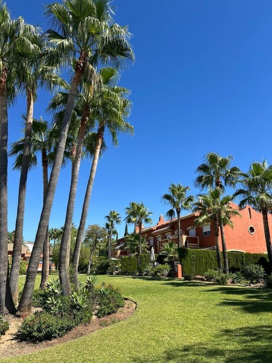 Spectacular corner townhouse in Lomas de Monte Biarritz, between Marbella & Estepona. Just 2 km from the beach and San Pedro de Alcántara, this 203 m² home sits on a 423 m² plot with a private tropical garden. Features include a bright living room with garden access, renovated premium kitchen, 4 bedrooms, 3 bathrooms, and a large solarium. Extras: Kommerling windows, photovoltaic solar panels (warranty until 2029), communal pool & gardens. A private retreat in one of the Costa del Sol's most sought-after areas.