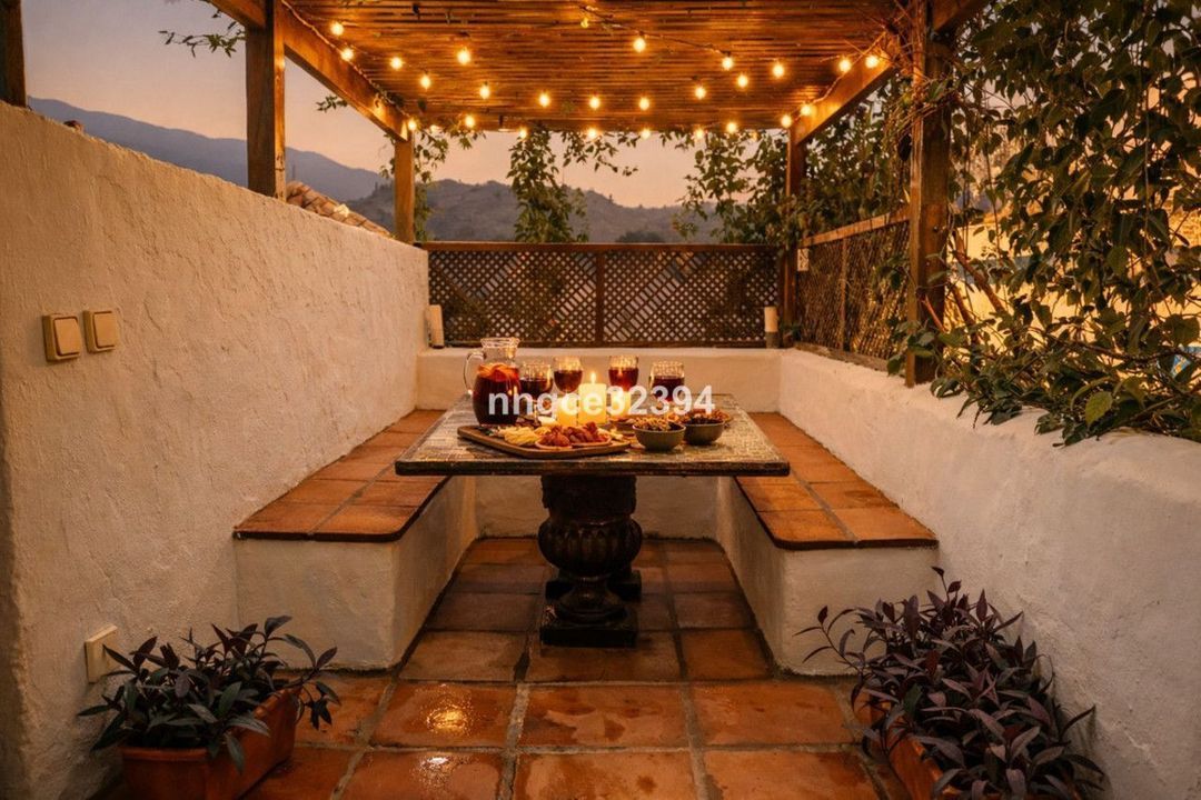 De woning is verdeeld over meerdere niveaus en ontvouwt zich met een natuurlijke flow en een aangenaam gevoel van privacy. De belangrijkste leefruimtes kenmerken zich door traditionele terracottavloeren, klassieke verhoudingen en een warme, uitnodigende sfeer die de ziel van een authentiek Andalusisch huis weerspiegelt. Een met wijnranken begroeid terras vormt een intieme setting voor diners in de buitenlucht en ontspannen avonden, terwijl het dakterras (solarium) open uitzichten biedt over het dorp en de omliggende bergen — perfect voor een drankje bij zonsondergang of rustige ochtenden.