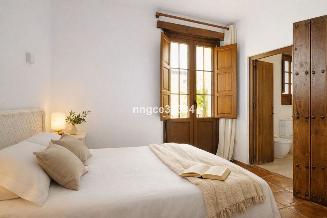 De bovenverdiepingen herbergen goed geproportioneerde slaapkamers, waaronder een hoofdslaapkamer met en-suite badkamer, allemaal met behoud van originele Andalusische details zoals houten luiken en het gebruik van natuurlijke materialen.