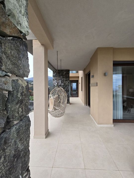 Stap binnen in dit prachtige appartement op de begane grond en ervaar een verfijnde, open indeling waar natuurlijk licht elke hoek overspoelt. Glazen deuren van vloer tot plafond openen in de muur om het spectaculaire uitzicht te bieden, waardoor het interieur versmelt met het omringende landschap van bougainvillea, rozemarijn en olijfbomen. Volledig uitgeruste keuken met Miele-apparatuur, geïntegreerde gashaard, aparte wasruimte.