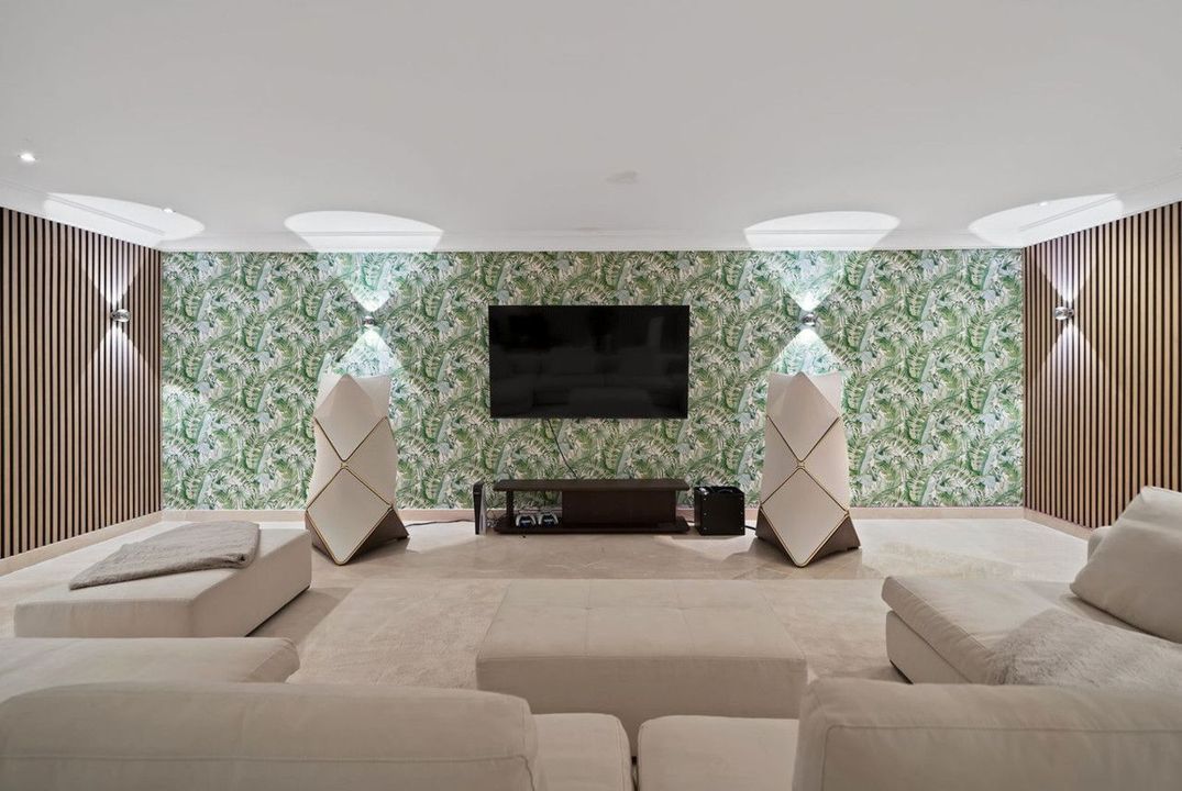 On the lower level, the property continues to impress with an extensive, fully equipped, loft style private gym, a dedicated cinema room with office area, and a double garage, offering both lifestyle and practicality.
